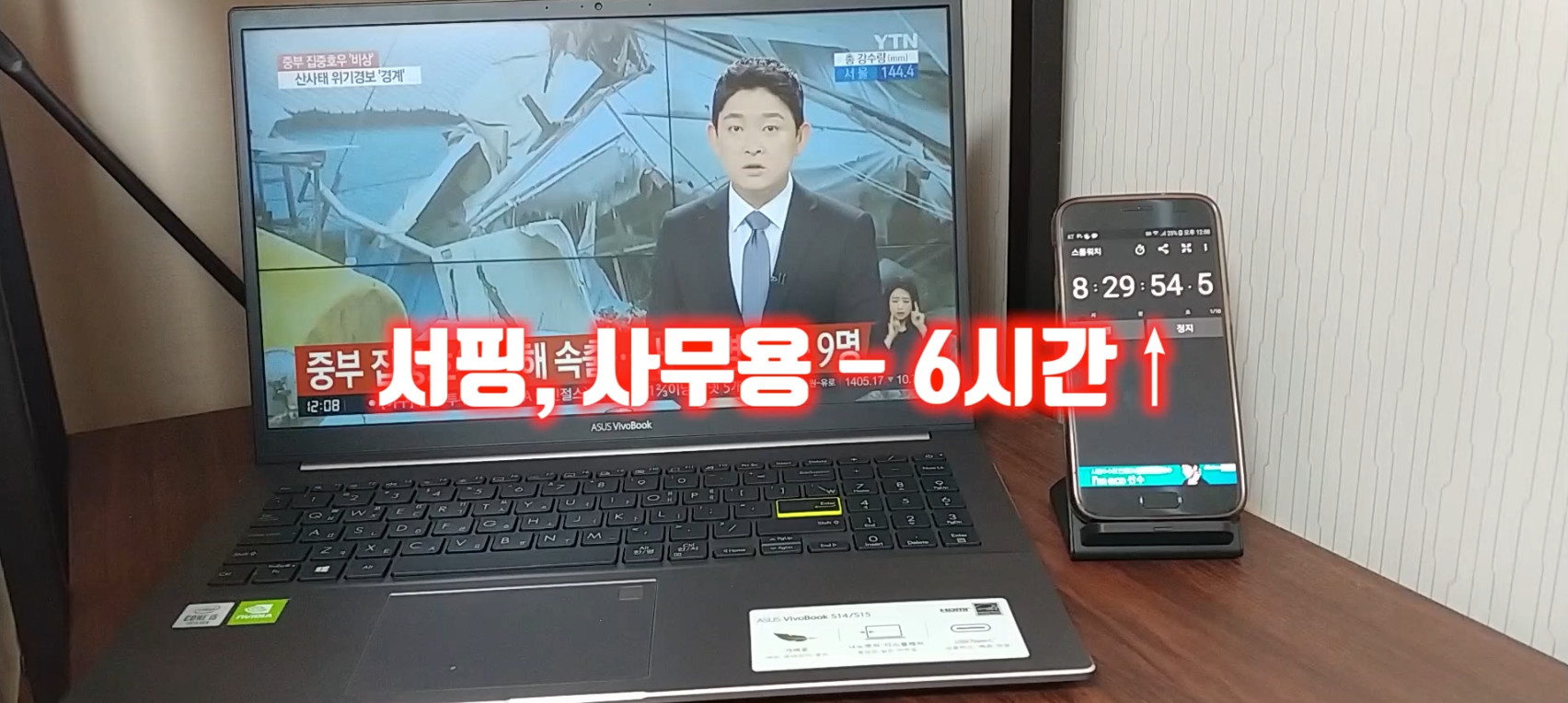 실제 서핑 및 사무용으로 사용해 보니 6시간 조금 넘게 사용 가능했고,