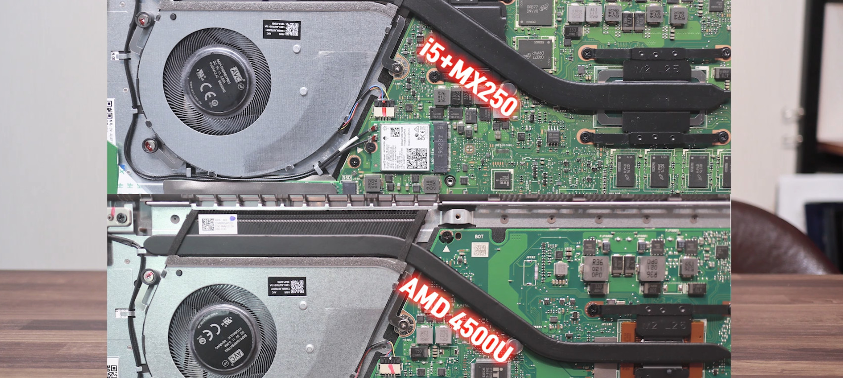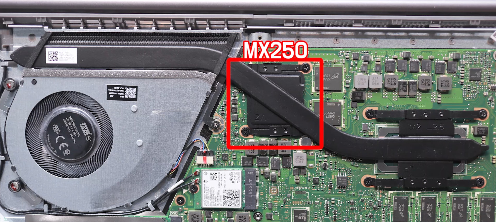 동일하게 온보드 램 8GB입니다. 제 사용 범위에서는 충분하지만 8GB가 부족한 사용자라면 이 노트북은 고려 대상이 아니겠죠. MX250이 추가 된 만큼 히트파이프가 살짝 두꺼워 진 것을 볼 수 있습니다. 하지만 그래봤자 원팬 원히트파이프죠. 저는 원팬 원히트파이프로 인텔과 MX250 조합 노트북이 발열을 잘 잡는 꼴을 한번도 못 봤습니다. 얇고 가벼운 휴대용 노트북의 한계라고 볼 수 있습니다.