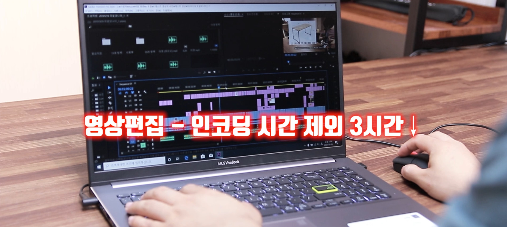 프리미어프로도 잘 됩니다. 꽤 부드러운 작업이 가능하고 영상편집 할 때는 발열이나 소음에 대한 스트레스 거의 없습니다. 유튜브에 올리는 FullHD 수준의 영상은 충분히 만들 수 있고 당연히 그 이상의 영상작업은 권장하지 않습니다.
