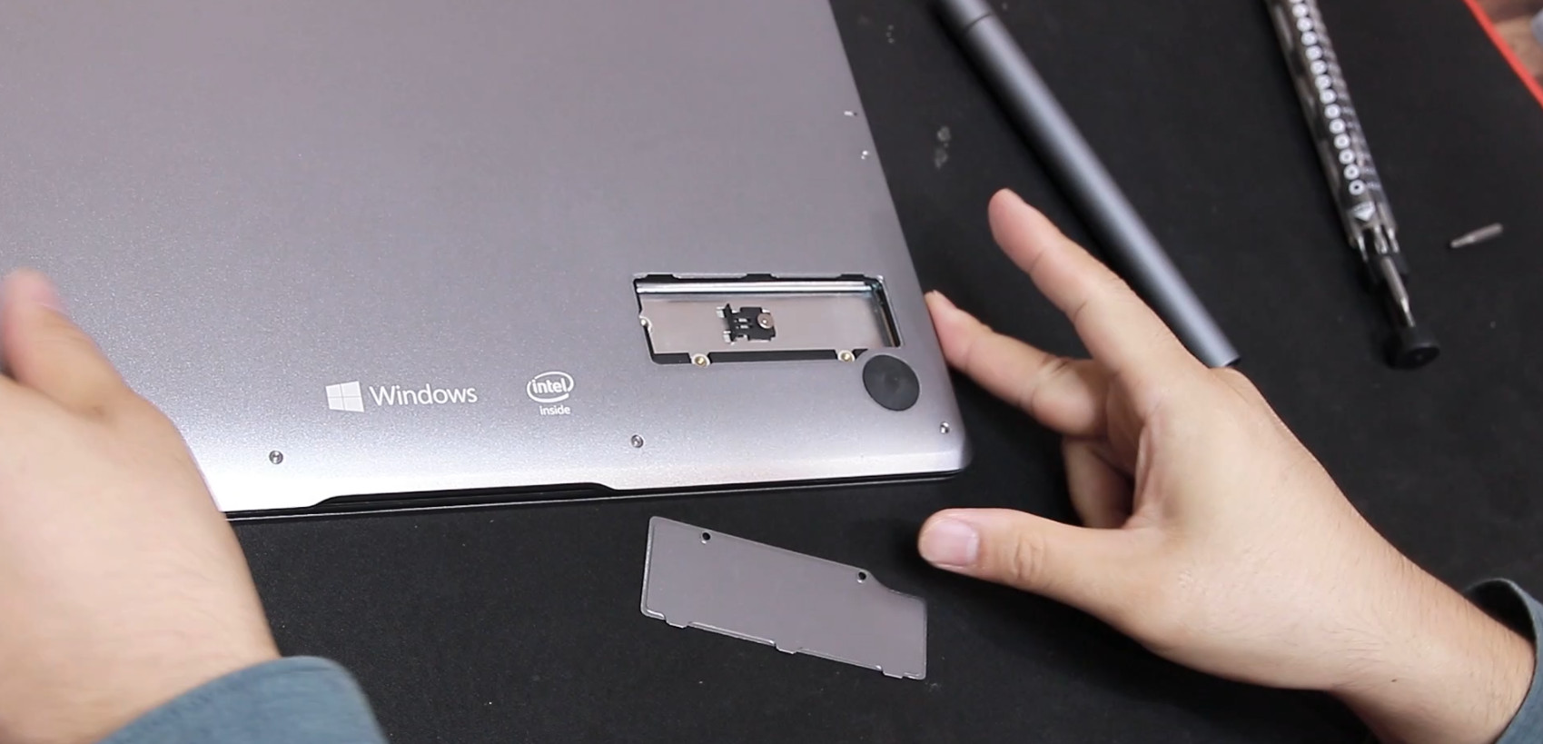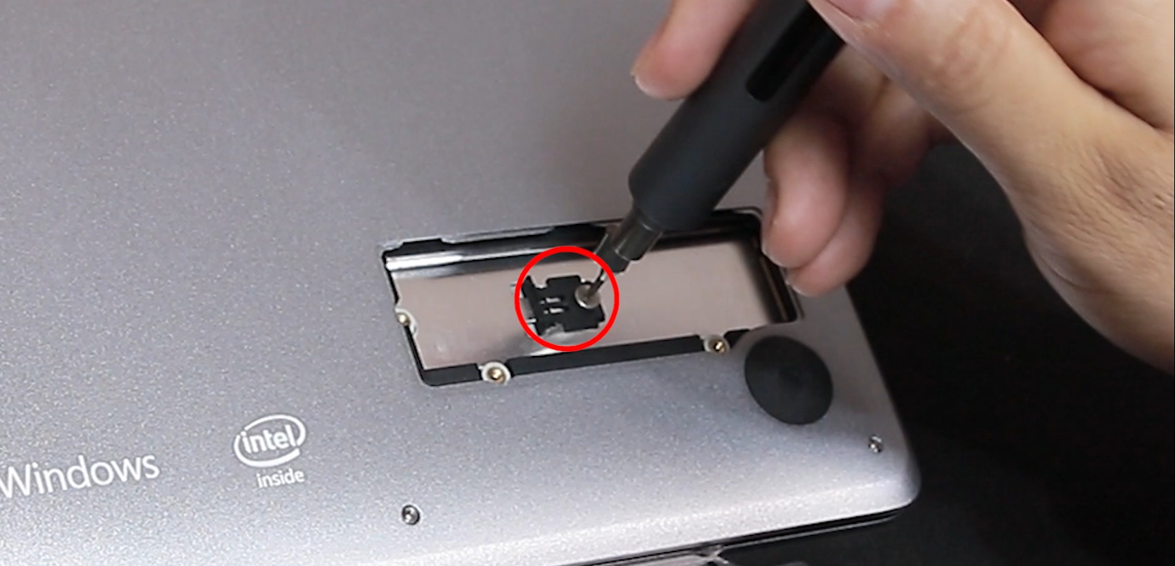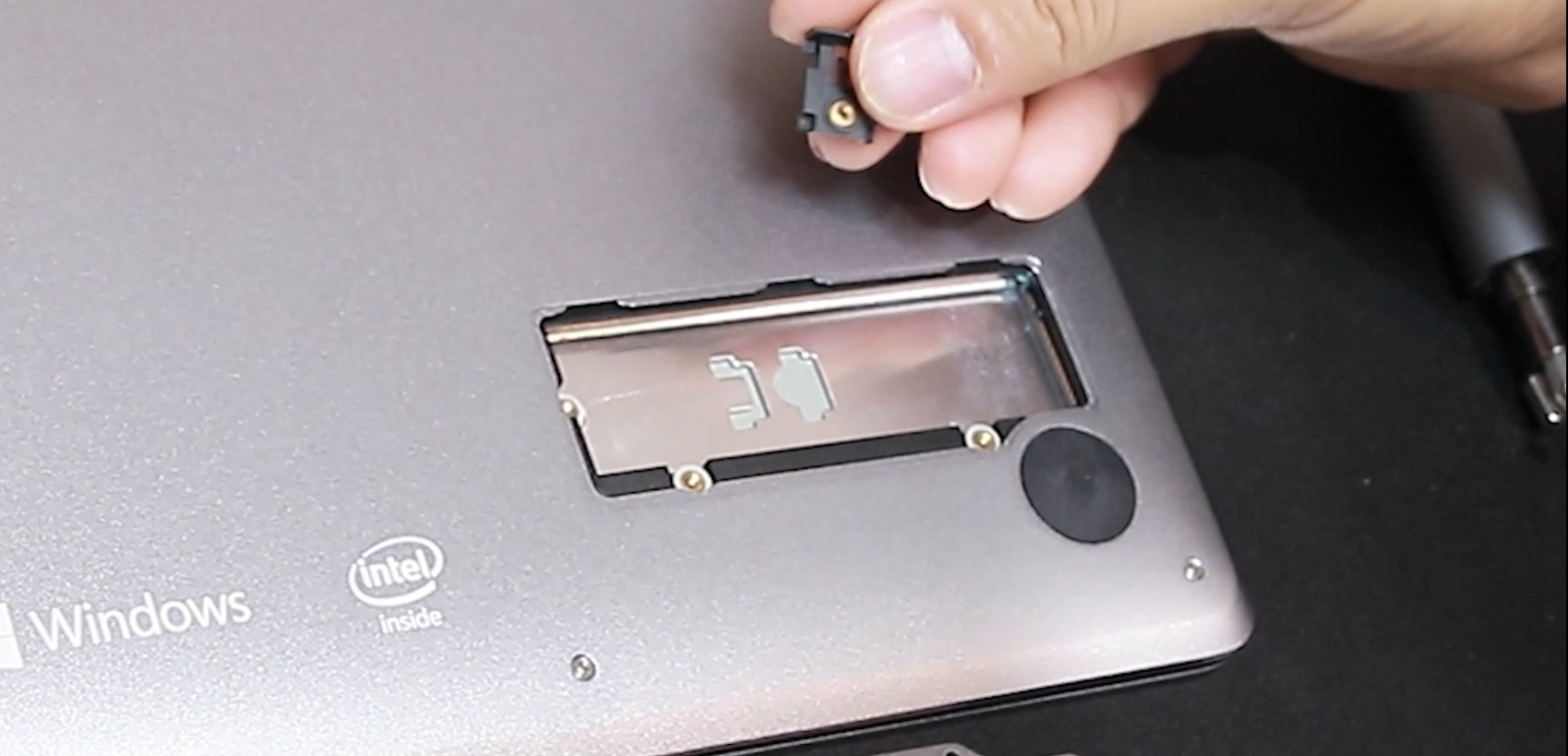 중간에 있는 나사를 먼저 풀어줍니다. SSD체결용 나사입니다.