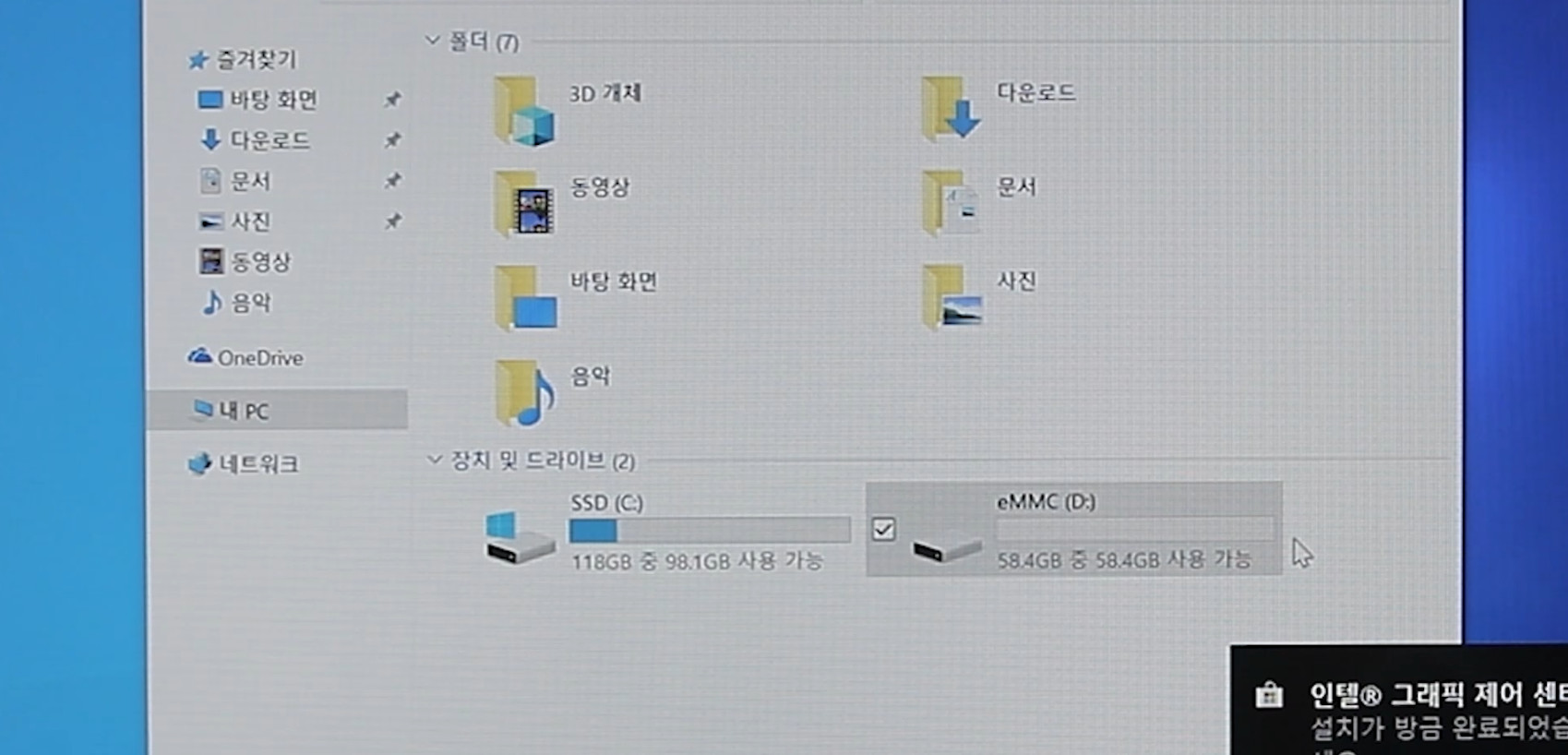 헷갈리지 않겠지만 혹시 모르니 이렇게 C드라이버는 SSD, D드라이버를 eMMC로 이름을 바꿔도 좋습니다.