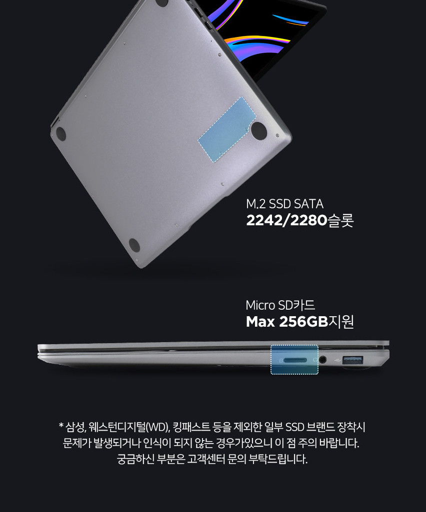 제품 상세페이지를 보면 삼성, WD, 킹패스트를 제외한 SSD는 장착 시 인식 문제가 있을 수 있다고 하네요. 이 부분을 정확히 확인하려면 주연테크 고객센터로 연락하셔야 할 듯 합니다. 저는 킹스톤 제품인데 문제 없이 잘 인식 되더라고요.