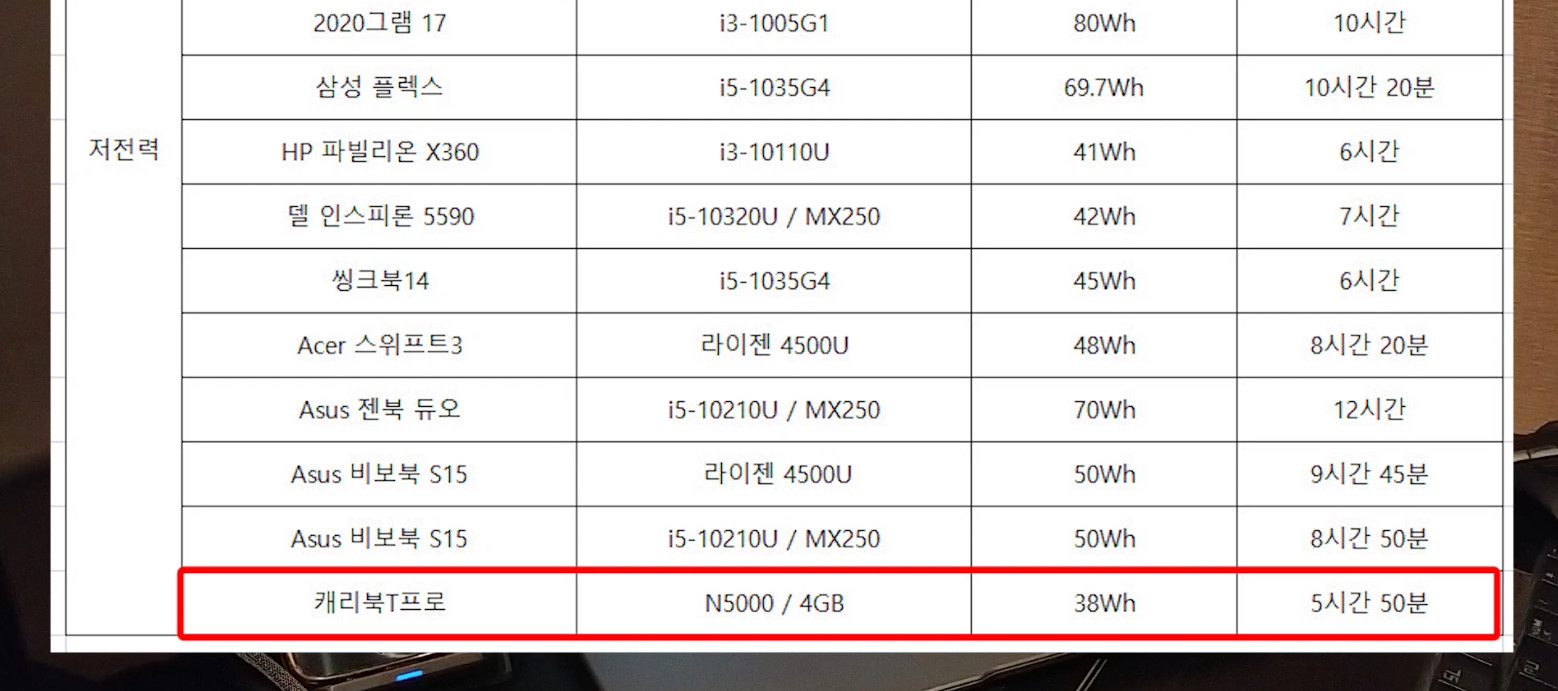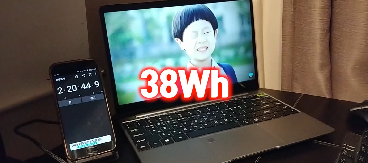 먼저 38Wh 배터리로 넉넉하지는 않지만 CPU가 워낙 전력을 적게 때문에 보통 펜티엄 실버급에는 이정도의 용량이 들어갑니다.