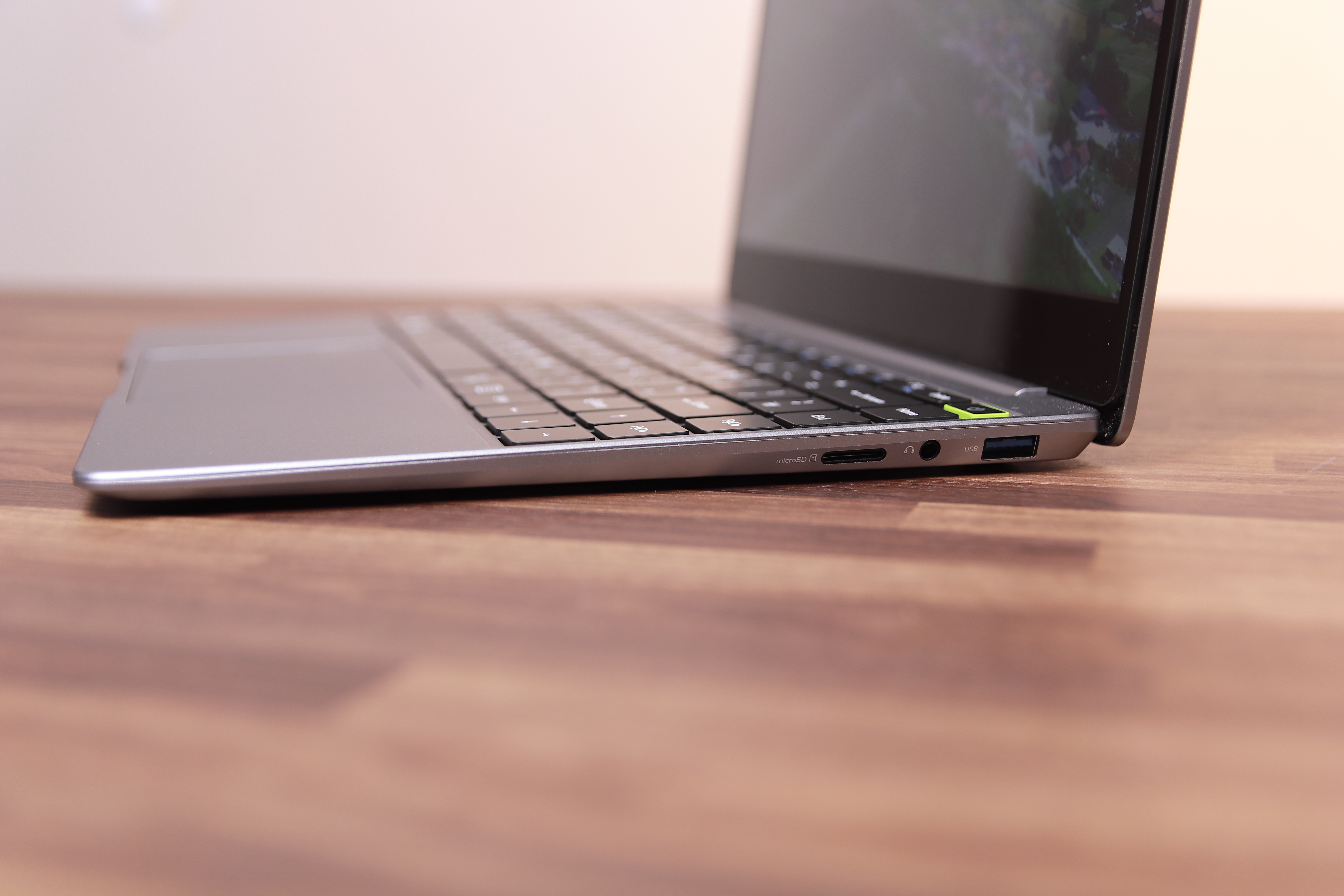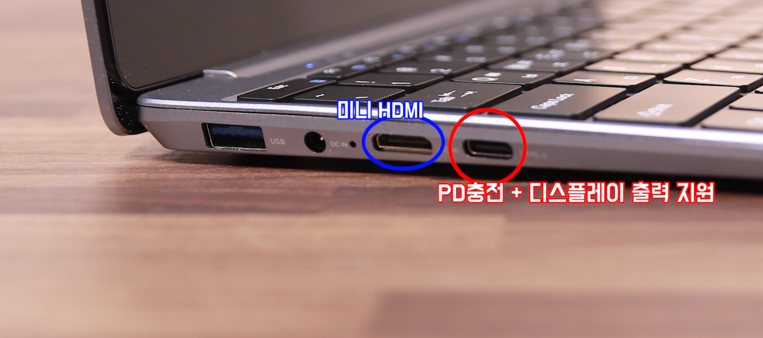 USB3.0 2개에 마이크로SD카드 슬롯, 그리고 미니 HDMI단자, PD지원하는 C단자를 지원합니다. 얇은 노트북이지만 정말 기본에 충실하다는 생각이 듭니다. PD충전을 지원하기 때문에 아주 좋은 포트구성을 가졌다고 볼 수 있죠. 미니 HDMI는 잘 사용하지 않는 규격이지만 PD충전 지원하는 C단자가 디스플레이 출력도 지원하기 때문에 불편할 것으로 생각되지는 않습니다. 제가 PD충전을 사용해 보니 상판에 미세전류 흐르는 것이 느껴졌습니다. 심하지는 않았지만 예민하신 분들은 참고하세요.