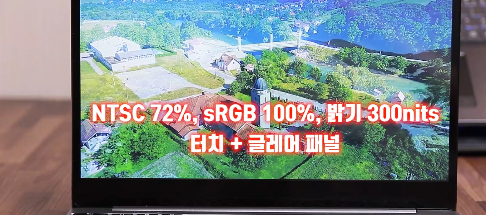 NTSC 72%, sRGB 100%, 밝기 300nits의 고급형 디스플레이입니다.