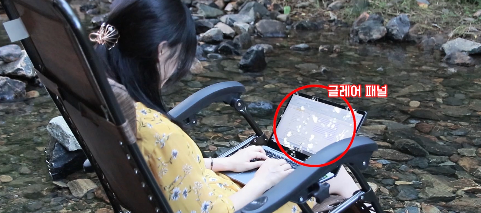 제가 그램과 플렉스 리뷰 때 지적했던 것과 동일한 단점이 있습니다, 이렇게 밝고 선명한 디스플레이를 가졌지만 결국 글레어 패널입니다. 빛 반사에서 자유롭지 못하죠. 제가 리뷰를 위해 노트북 촬영 할 때도 계속 제 모습이 비춰져서 편집 할 때 좀 힘들었어요. 이 부분은 확실히 호불호가 있습니다.