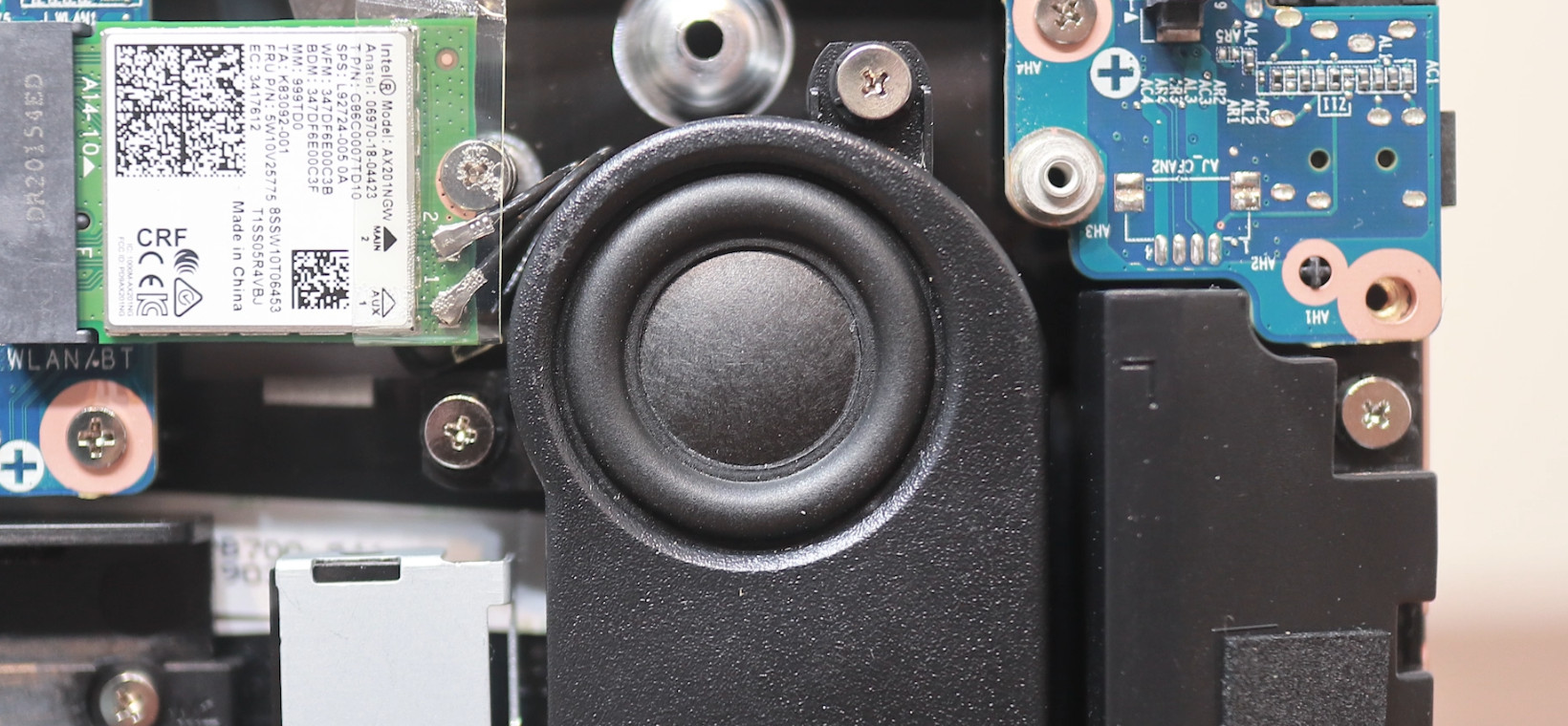 리오나인의 자랑인 2.1채널 스피커입니다. 우퍼가 있다는 의미죠. 최신 노트북에 좋은 성능의 스피커는 들어갈 수 있지만 이렇게 성능 좋은 우퍼는 들어가기 힘듭니다. 우퍼는 물리적인 부피가 필요하기 때문에 이렇게 뚱뚱한 노트북들의 혜택이라고 볼 수 있죠. 얇게 제작할 수도 있겠지만 우퍼에 추가 전력을 사용해야 되기 때문에 이렇게 데스크탑 대용 노트북에 잘 어울립니다.