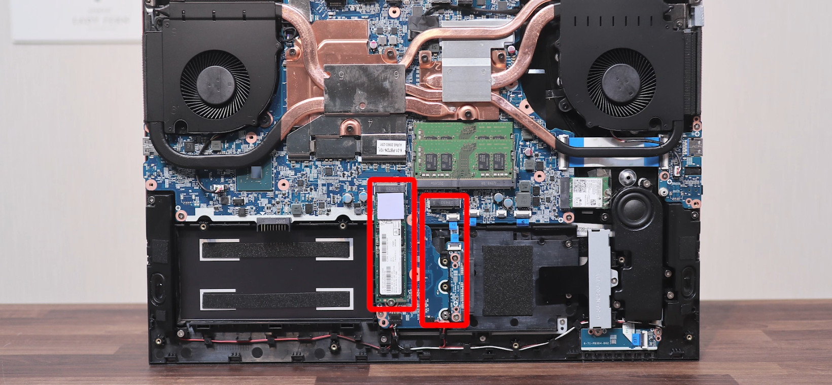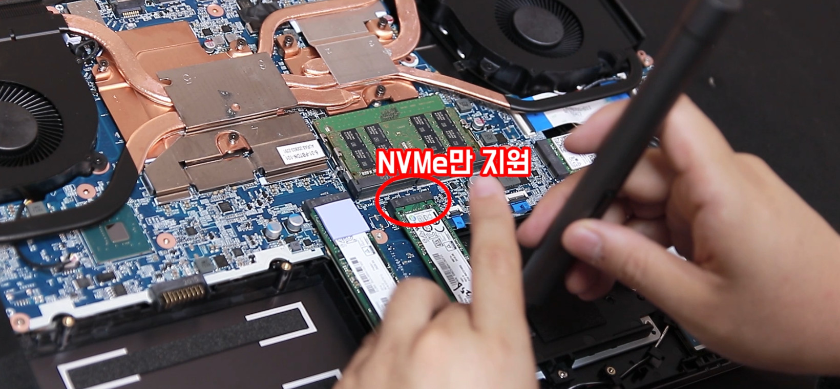 M.2 슬롯은 총 2개가 있습니다. 그래서 트리플 스토리지를 지원하죠. 덩치가 크고 무거운 노트북들은 이렇게 해줘야 한다고 생각합니다.