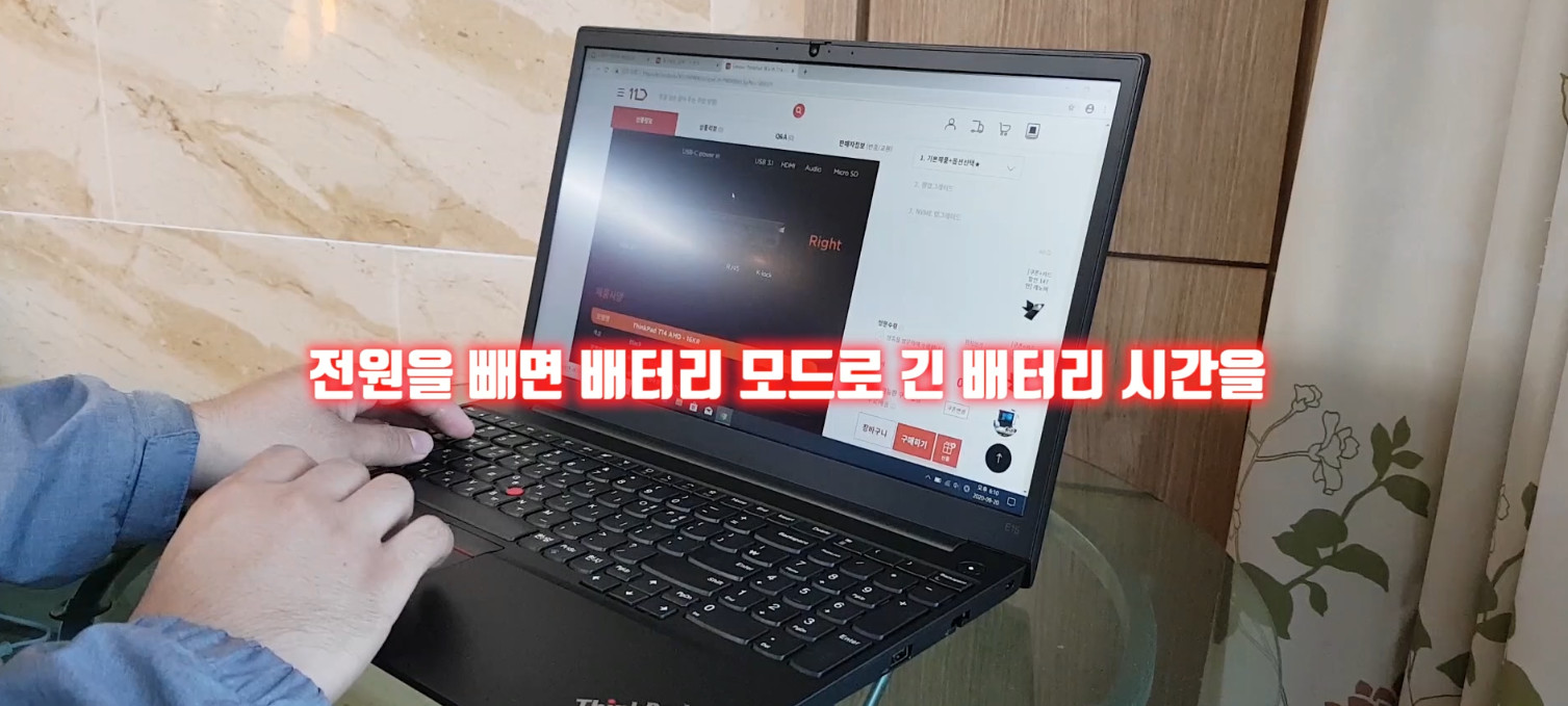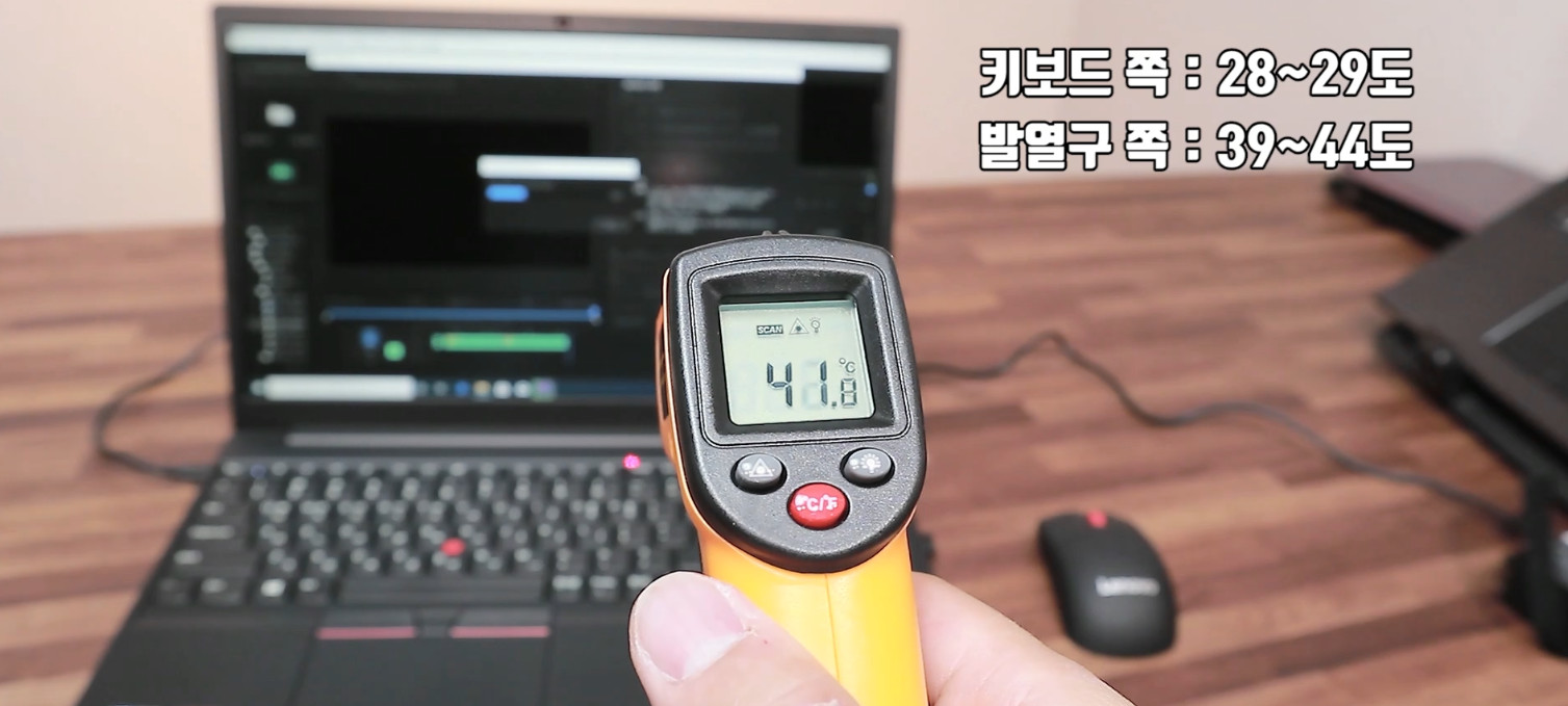 지금 이 노트북이 씽크패드 E라인, 보급형 노트북이죠. 씽크패드는 보급형에서도 이정도의 사용 퀄리티를 보여줍니다. 효율이 높은 씽크패드의 냉각 시스템, 투 히트파이프, AMD 라이젠 CPU. 완벽한 조합이라고 생각합니다.