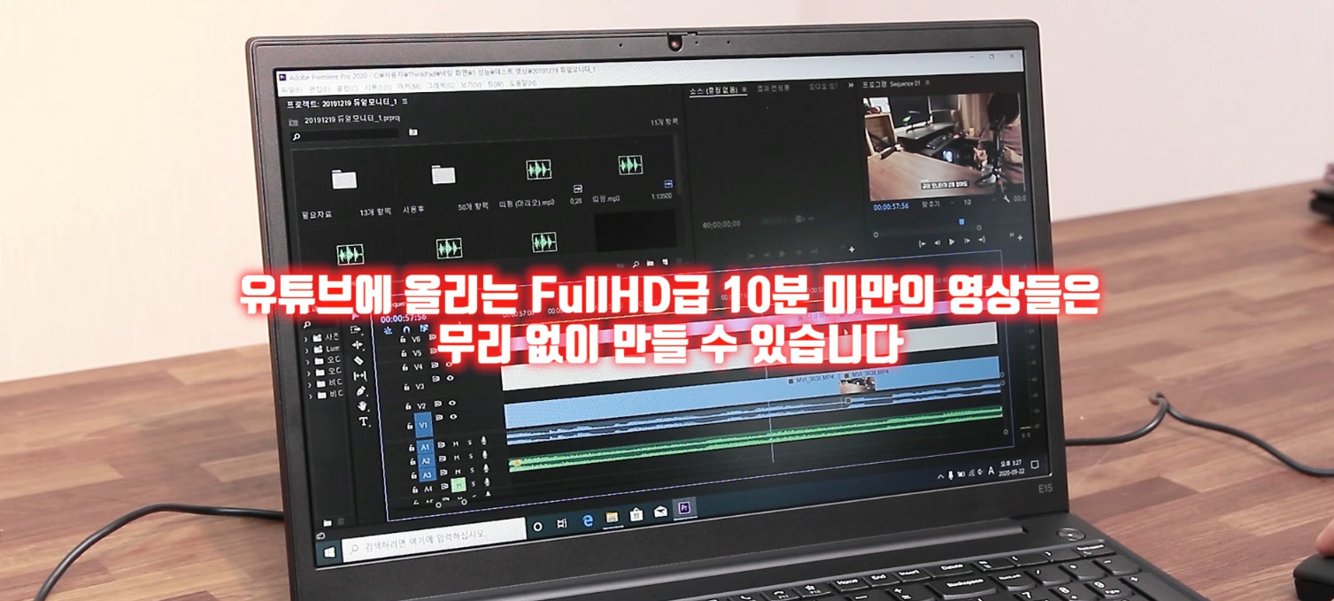유튜브에 올리는 FullHD급 10분 미만의 영상들은 무리 없이 만들 수 있습니다. 지금 제가 만드는 이런 긴 영상들은 사용하는 데이터가 워낙 많기 때문에 이러한 저전력 노트북으로는 힘들지만 10분 미만의 영상 정도는 충분히 무리 없이 만들 수 있습니다.