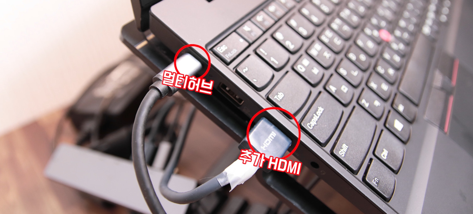 참고로 C단자 멀티허브를 사용해서 디스플레이를 출력하는 동시에 HDMI로 출력하면 트리플 모니터로도 사용 가능합니다.