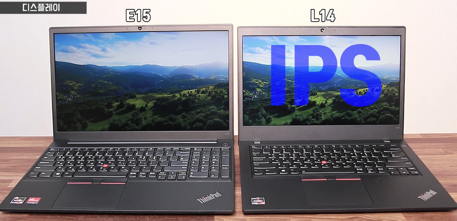 옆에 보이는 L14는 패널만 IPS 저반사 패널이고 상세 스펙은 동일합니다. 실제로 보면 차이가 많이 나는데 영상에서는 큰 차이로 보이지 않더라고요.