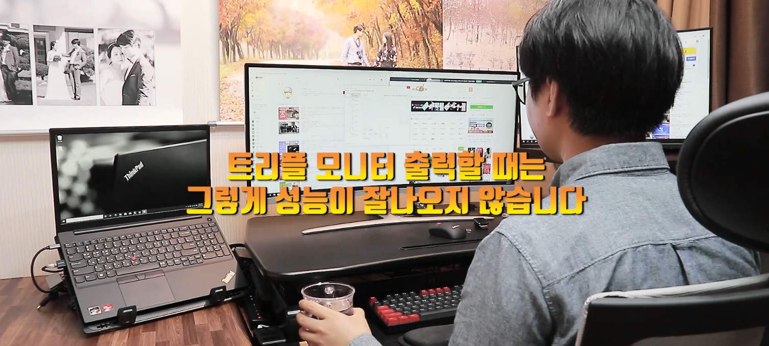 트리플 모니터 출력했을 때도 그렇게 성능이 잘나오지는 않습니다. 작업에 따라 모니터 주사율이 너무 내려가기 때문에 끊기는 것이 느껴집니다. 이부분은 성능을 떠나 저전력 노트북의 공통점이고 한계라고 볼 수 있죠. 적당히 FullHD급 모니터 하나만 연결하거나, 트리플 모니터를 사용하고 싶다면 사무용 이상의 사용을 권장하지 않습니다.