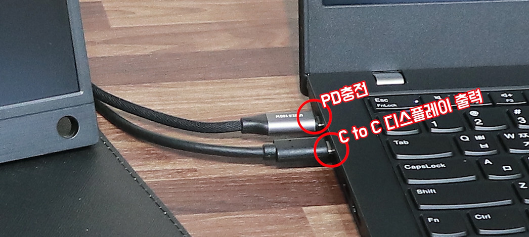 영상과 같이 충전하면서 C to C로 외부 모니터 출력할 수도 있고 그 외 C단자를 사용하는 외부 입력 장치를 자유롭게 사용할 수 있습니다. 이 부분은 사용하기 나름으로 볼 수 있죠.