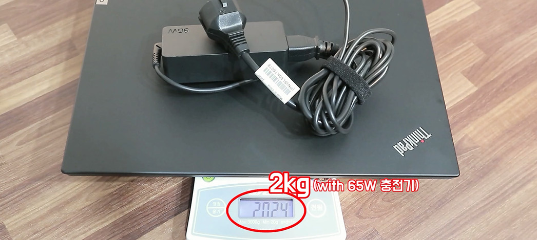 만약 작년과 동일하게 65W충전기를 제공했다면 이렇게 2kg가 넘어갑니다. 이 부분은 그냥 최악이라고 생각하면 됩니다. 경량화에 인색한 삼성, LG 보급형 노트북도 이정도로 무식하게 만들지는 않습니다.