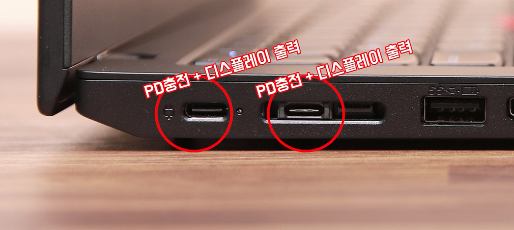 전원부로 사용하는 C타입 포트는 당연히 PD충전과 디스플레이 출력을 지원합니다. 그리고 씽크패드 전용 도킹스테이션 포트에 있는 C타입 역시 PD충전과 디스플레이 출력을 지원합니다. 쉽게 말해서 전원부가 2개 있다는 의미이고 동급 대비 확장성은 최고라고 볼 수 있습니다.