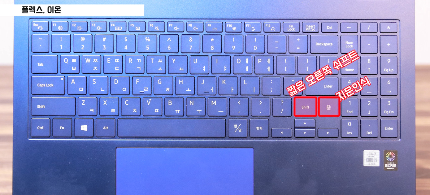 그리고 방향키의 구분감은 확실한 편이지만 지문 인식이 오른쪽 쉬프트에 위치하고 있어서 쉬프트가 작아졌습니다. 오른쪽 쉬프트 사용량이 많다면 당연히 불편하죠, 그리고 숫자패드와 문자패드간의 구분감이 없기 때문에 그 사이에서의 오타율 역시 높습니다. 전체적으로 오타율 높고 좋지 않은 키보드입니다. 사용자의 인터페이스를 고려하지 않고 얇은 노트북을 만들겠다는 고집이 이러한 이상한 키보드를 만들었죠.