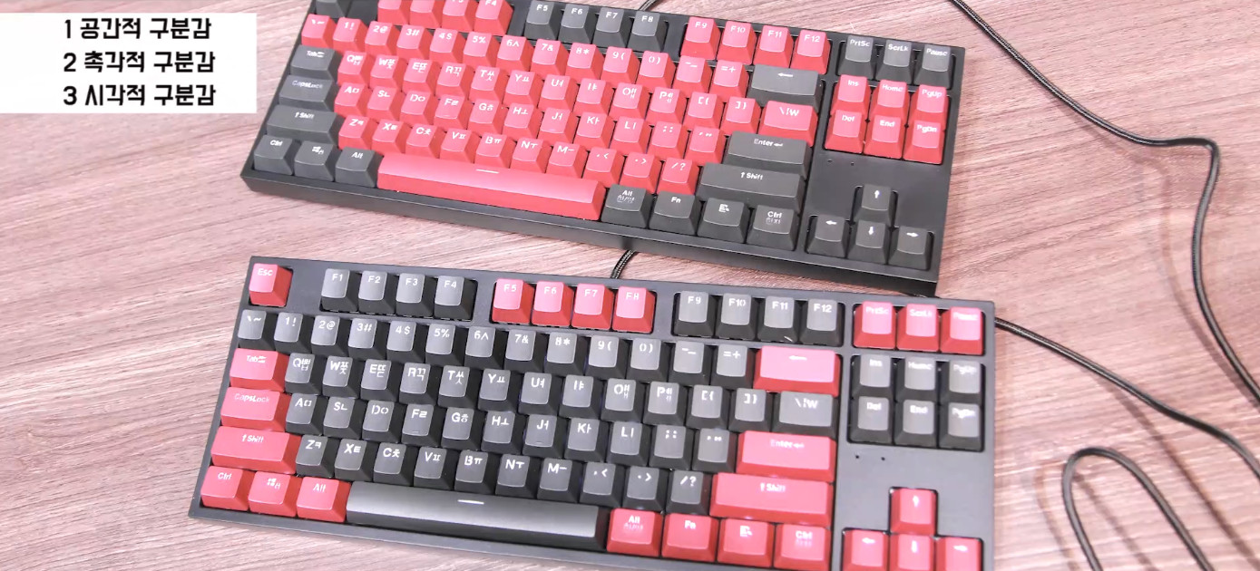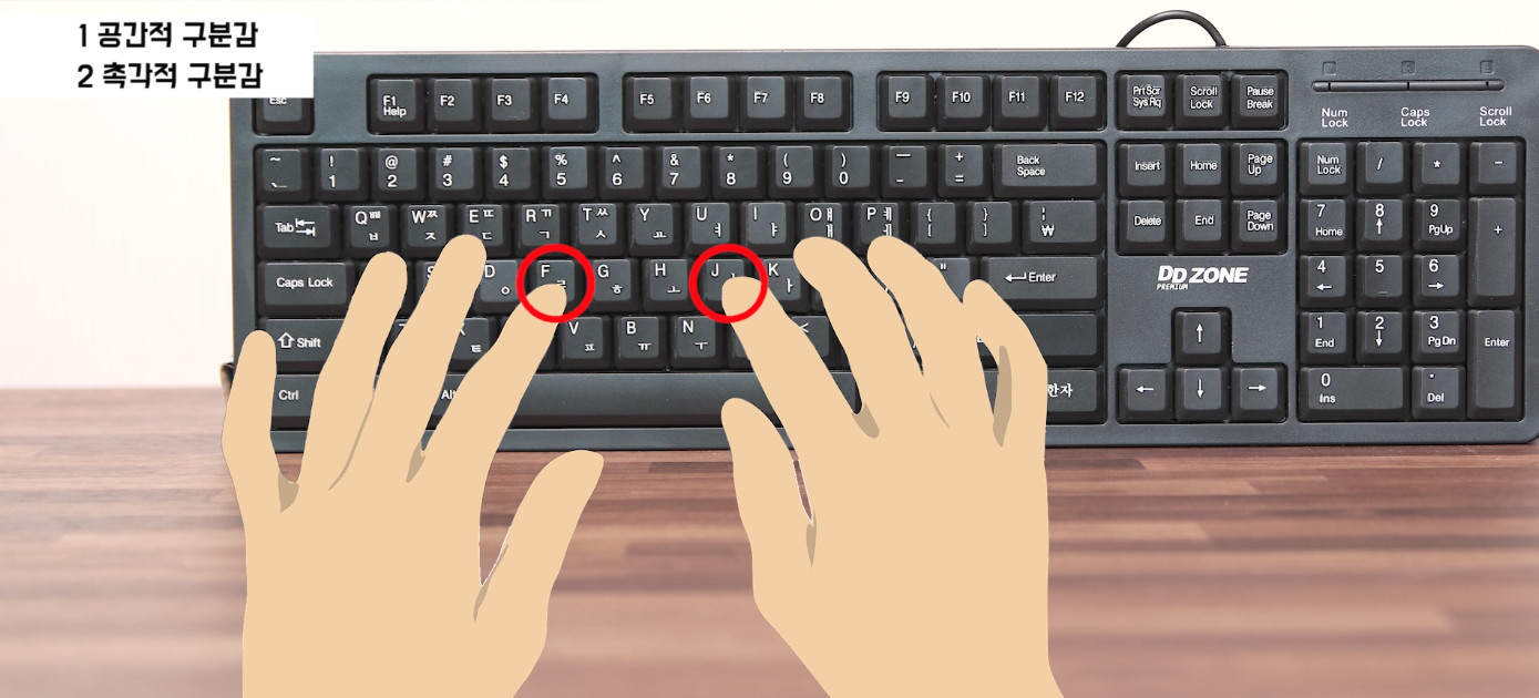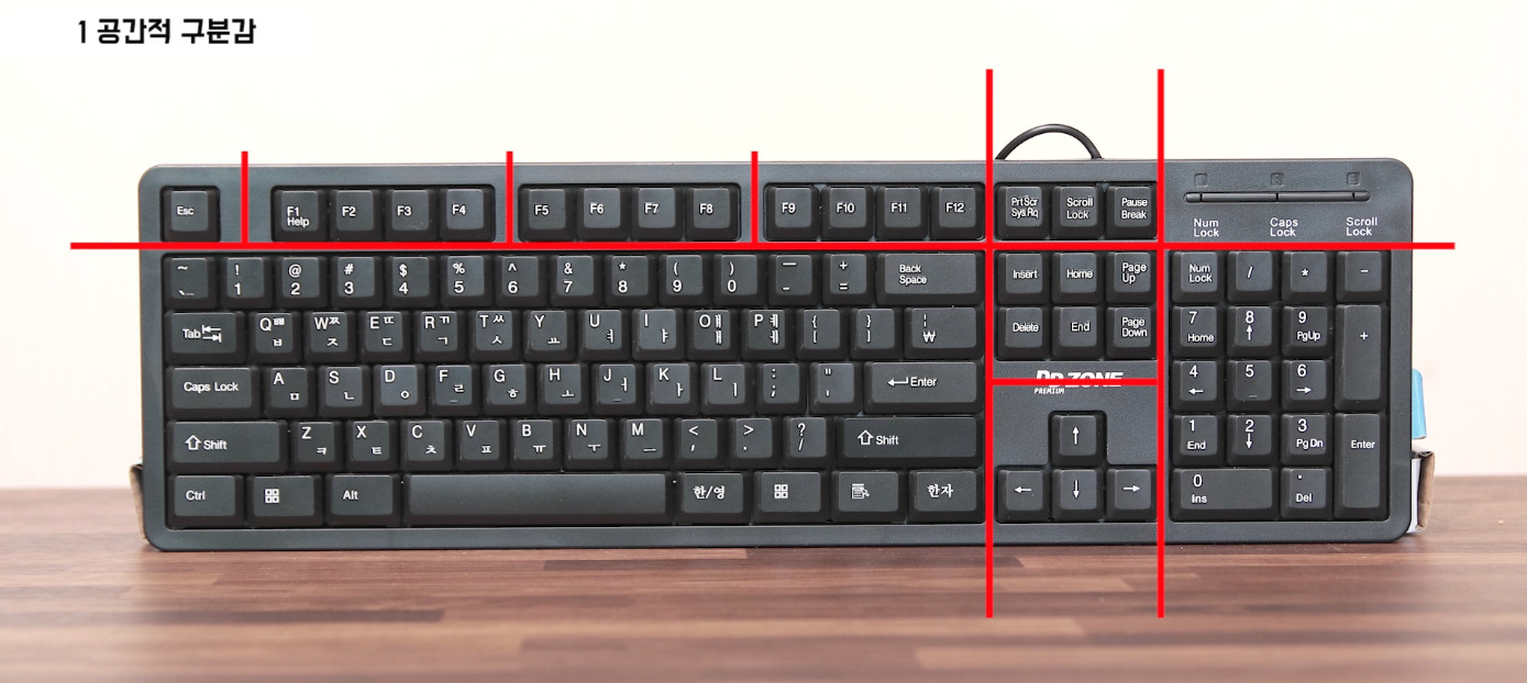 우리는 항상 키보드를 보면서 타이핑 하지는 않습니다. 이렇게 화면 중심의 PC사용을 하기 때문에 키보드에서 오타를 내지 않기 위해서는 "구분감"이라는 개념이 필요합니다.
