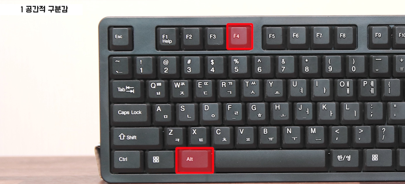우리가 윈도우 창을 끄기 위해 Alt + F4를 많이 사용하는데 충분히 오타 없이 누를 수 있습니다. 반면 F4와 F5가 붙어있는 키보드에서는 Alt + F4의 오타율이 증가할 수 밖에 없죠.