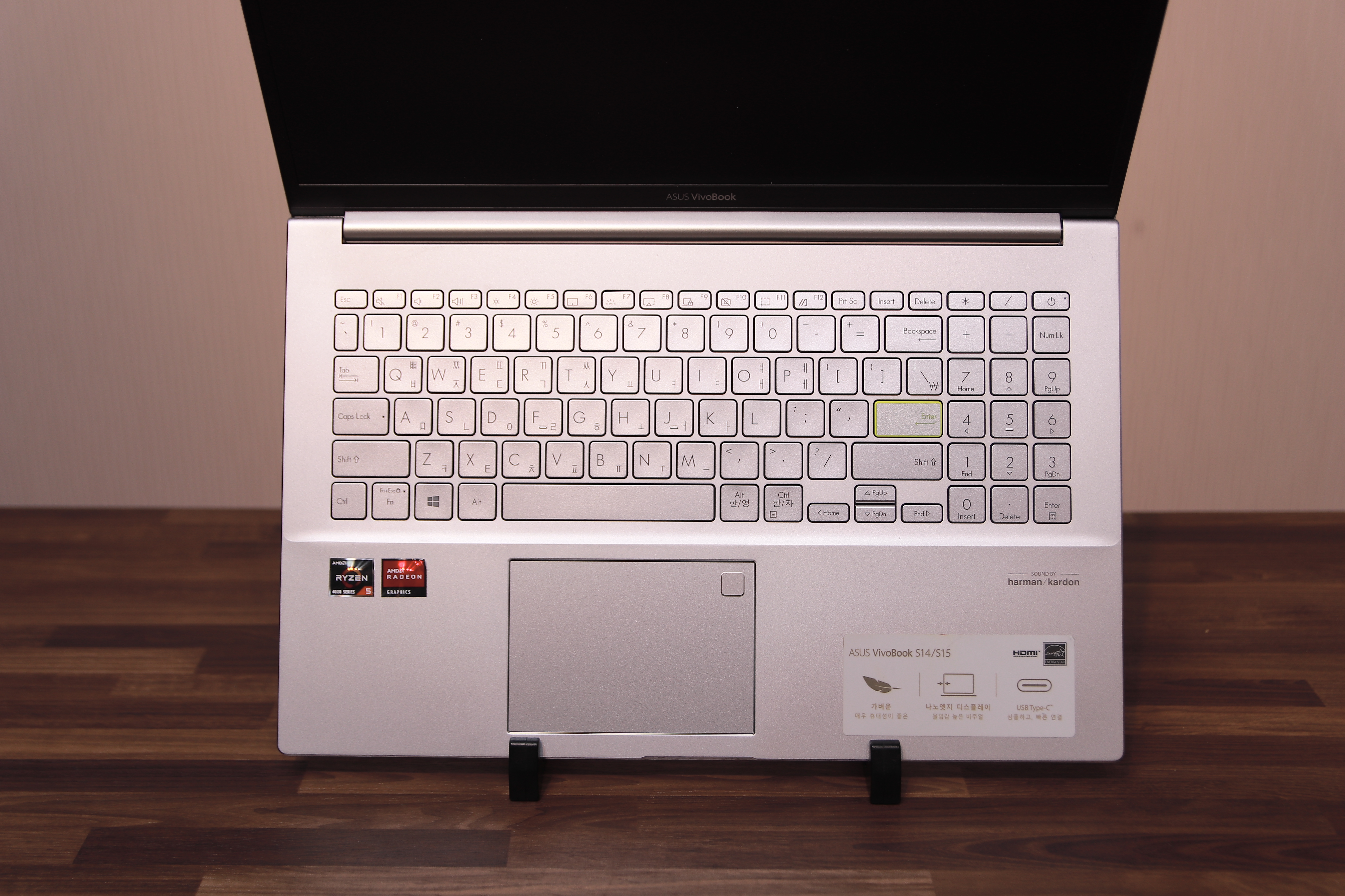 잘 보면 씽크패드와 같이 모서리가 깍여 있어서 구분감을 주려고 노력은 했지만 실제로 크게 다가오지는 않습니다. 좁은 공간에서 할 수 있는 최대치의 노력 정도로 보면 될 듯 합니다.