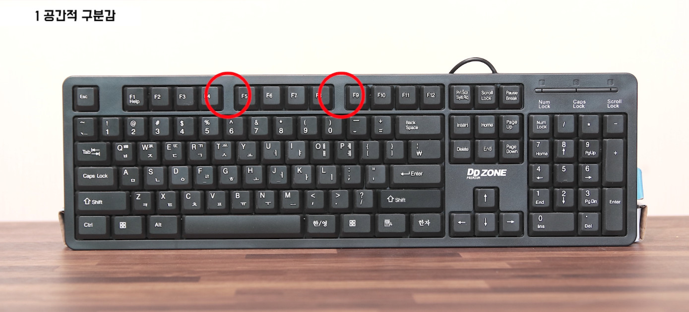 뿐만 아니라 F4와 F5, F8과 F9 역시 공간적으로 구분이 되어있습니다. 키보드를 보지도 않고도 F4와 F5를 오타없이 누를 수 있게 되는 이유가 이것 때문이죠.