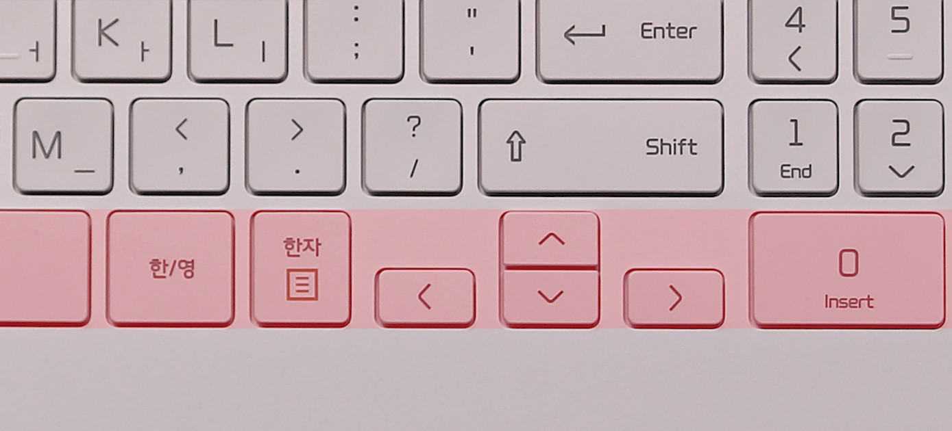 문자키와 숫자키 사이에 미세하게 구분감이 적용되었습니다. 확실한 구분감은 아니지만 나름 노력한 것으로 볼 수 있죠.