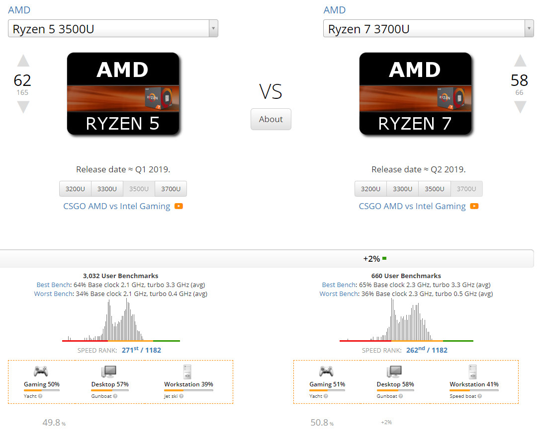 라이젠5 3500U와 라이젠7 3700U이 성능이 차이가 별로 없기 때문에 3500U가 더 좋다 라는 말은 피카소 등장 때 부터 나왔습니다. 실제로 판매율도 3500U가 압도적이죠.