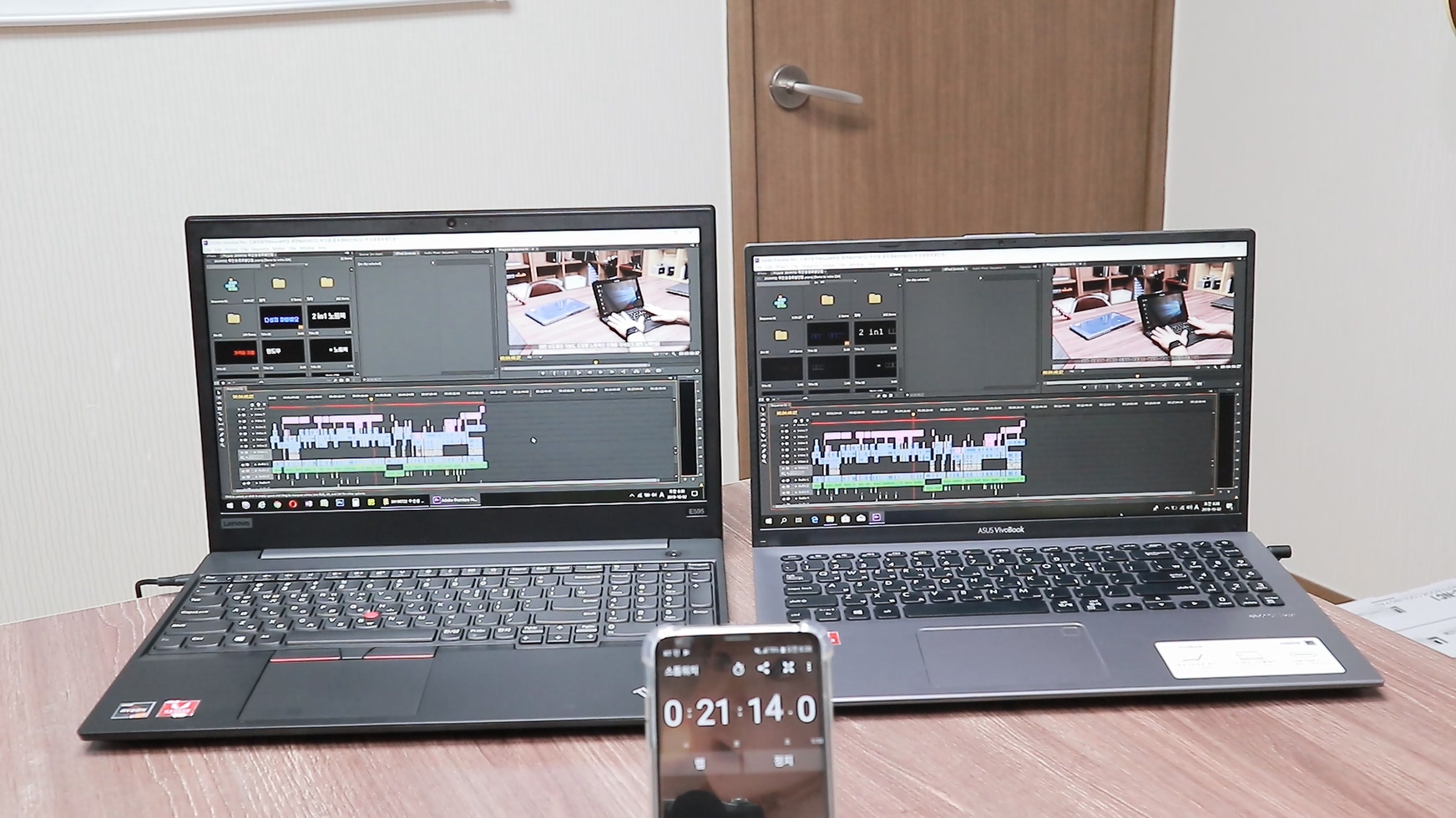 중간에 Asus의 화면이 꺼진건 전원 설정때문에 화면만 꺼진것으로 테스트 결과와는 무관합니다.