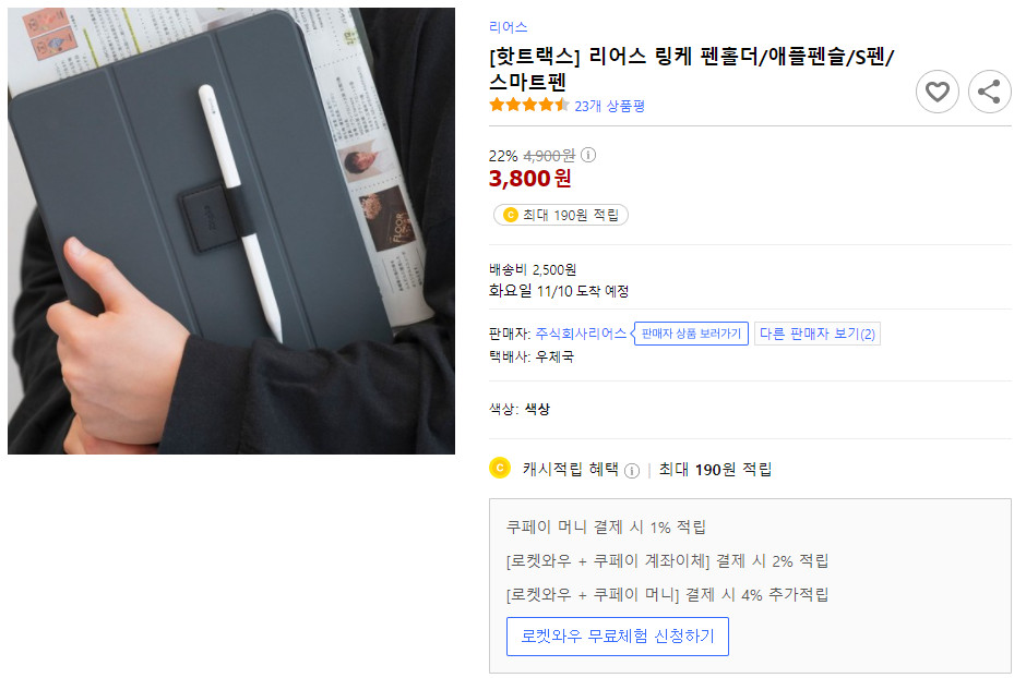 온라인에서 구매 가능하지만 배송비가 아까운 가격이죠. 배송비 아끼기 위해 여러 개 구매할 수도 있지만 사실 스타일러스펜은 건전지의 전력을 적게 사용하기 때문에 건전지 하나만으로도 꽤 오래 사용합니다. 그래서 굳이 여러 개 사 놓을 필요가 없죠.