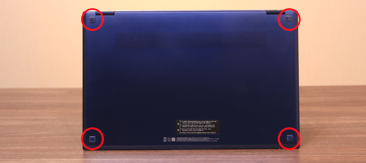 형식적이다 못해 없는 수준으로 달아 놓은 노트북도 많죠. 이렇게 되면 태블릿 모드에서 바닥에 놓고 사용할 때 키보드 부분이 바닥에 완전히 노출되는데 잔 기스들이 많이 생길 수 있습니다.