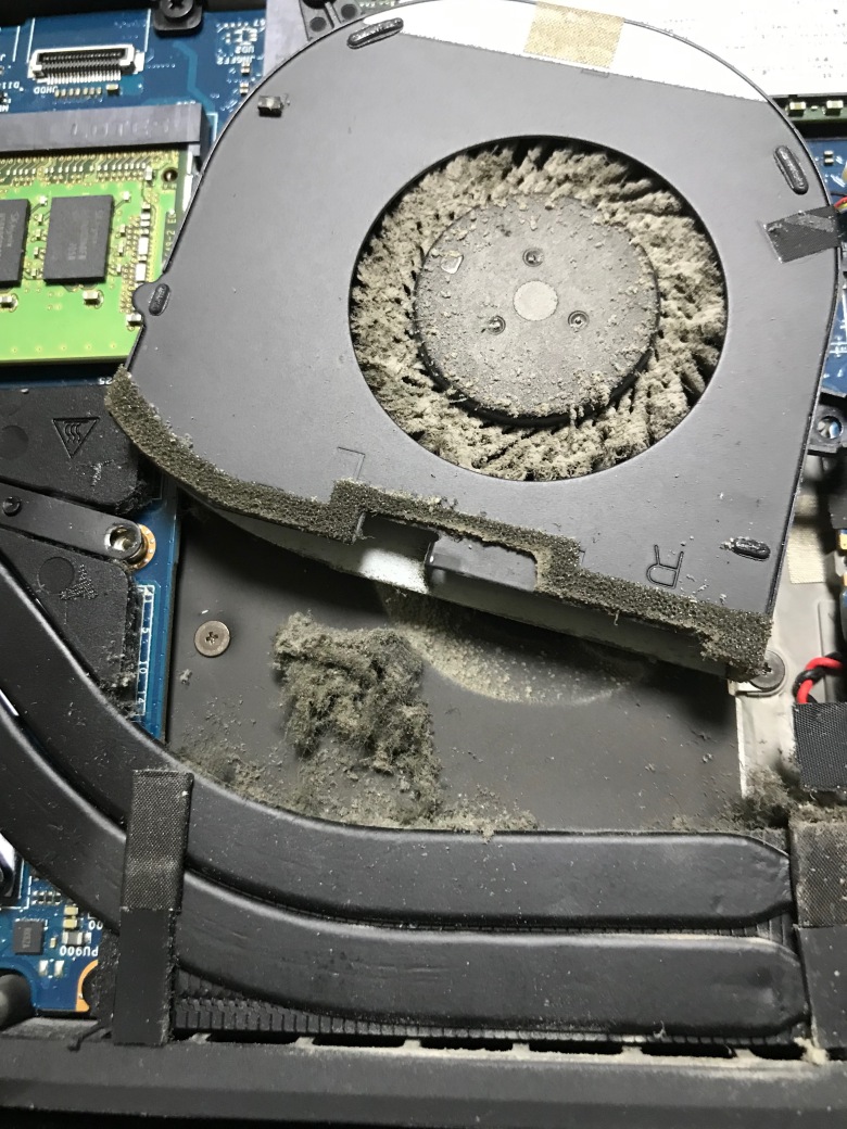그래서 쿨링패드를 사용했기 때문에 노트북 내부에 먼지가 많이 들어갔다.