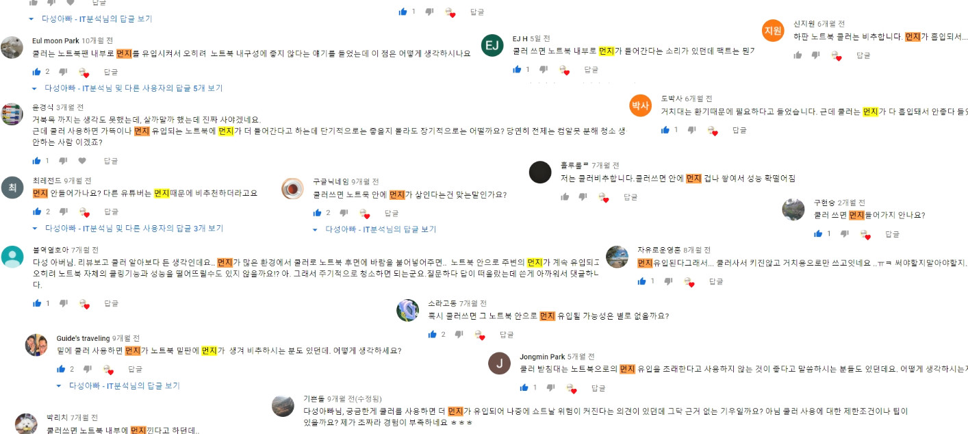 노트북 사용 환경이 좋지 않으면 쿨링패드를 사용하지 않아도, 노트북 내부에 먼지가 많이 쌓입니다.