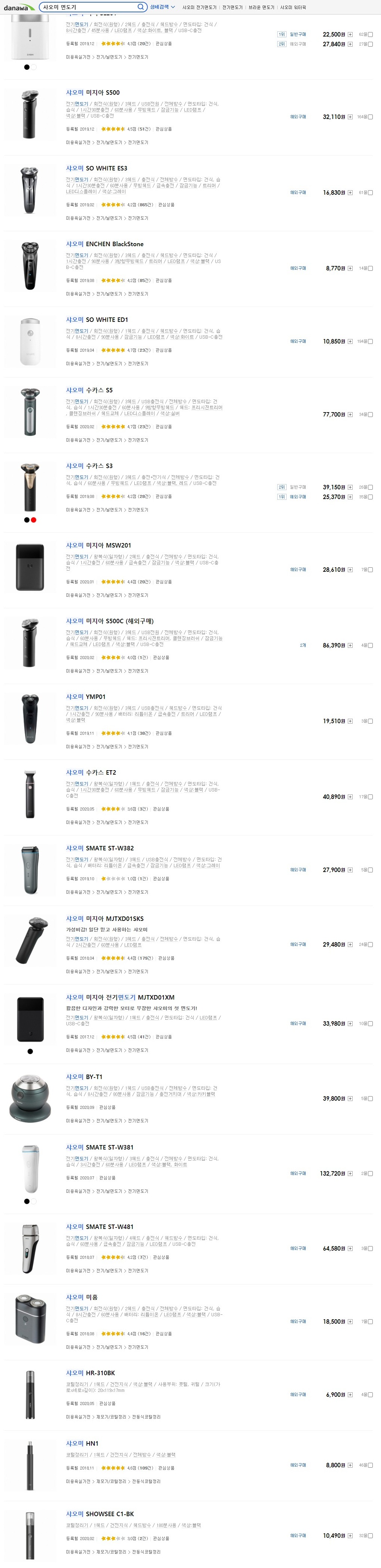 샤오미 면도기를 검색하면 정말 다양한 면도기들이 나옵니다. 사실 샤오미에서 만든 제품은 아니고, 샤오미의 자회사 혹은 샤오미 브랜드만 달고 나온 제품으로 보시면 됩니다. 쉽게 말해 "중국산 저가 면도기" 라고 보시는 것이 더 알맞습니다.