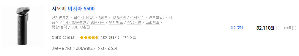 그래서 출장용으로 사용할 수 있는 저렴한 면도기를 찾다가 발견한 것이 이 작은 사이즈의 면도기였습니다. 이것도 샤오미 면도기로 판매하는 제품인데 사놓고 보니 샤오미 제품은 아니더라고요. 그냥 "중국산 저가 면도기" 로 보시면 됩니다.
