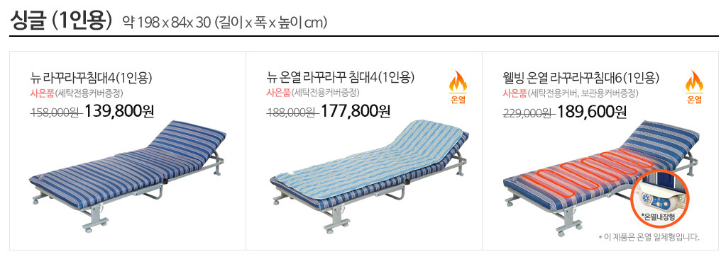 제가 구매한 제품은 1인용 싱글 사이즈이고, 가장 저렴한 기본형 모델입니다.