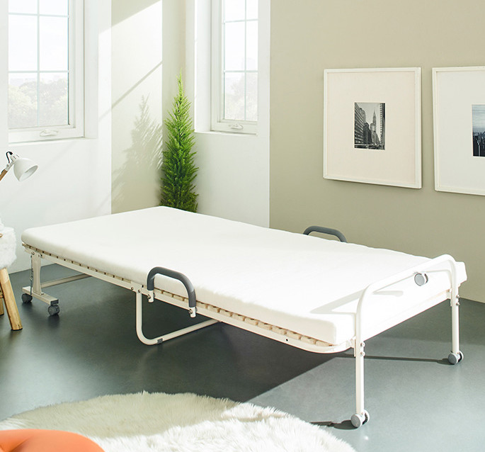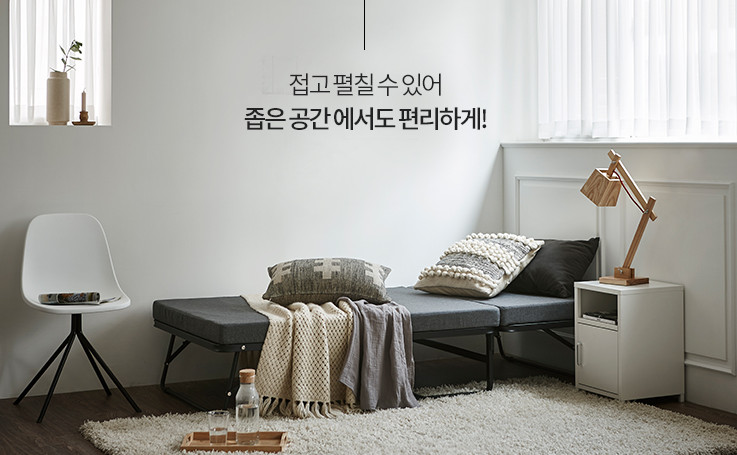 안쪽에 스프링이 잡아주고 있기 때문에 침대의 무게를 거의 느끼지 못할 정도로 가볍게 접고 펼 수 있으며, 당연히 근력이 부족한 여성분들도 쉬운 사용이 가능합니다.