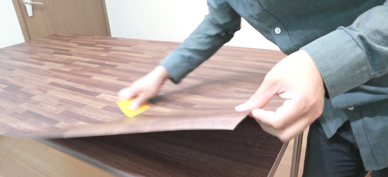 시트지는 쉽게 생각해서 스티커라고 보시면 되고, 접착면을 붙이기만 하면 됩니다. 하지만 책상과 같이 면적이 넓은 곳을 정확히 한번에 붙이는 것은 거의 불가능하죠. 그래서 조금씩 붙일 건데 그 조금씩도 사실 오차 없이 부착하는 것이 힘듭니다.