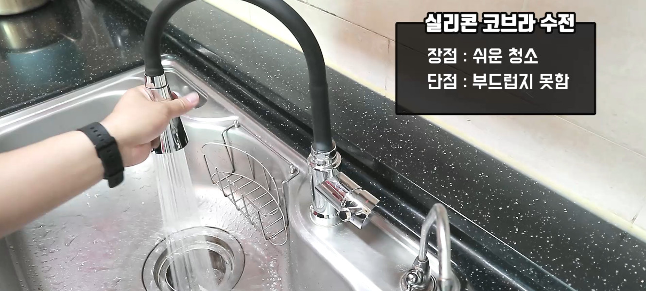 코브라형은 자바라 사이에 물 때가 잘 생기곤 하는데, 쉬운 관리를 위해 이 부분에 실리콘 처리가 된 제품을 구매했습니다.