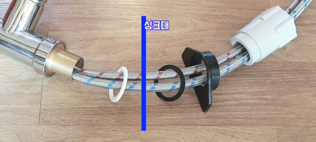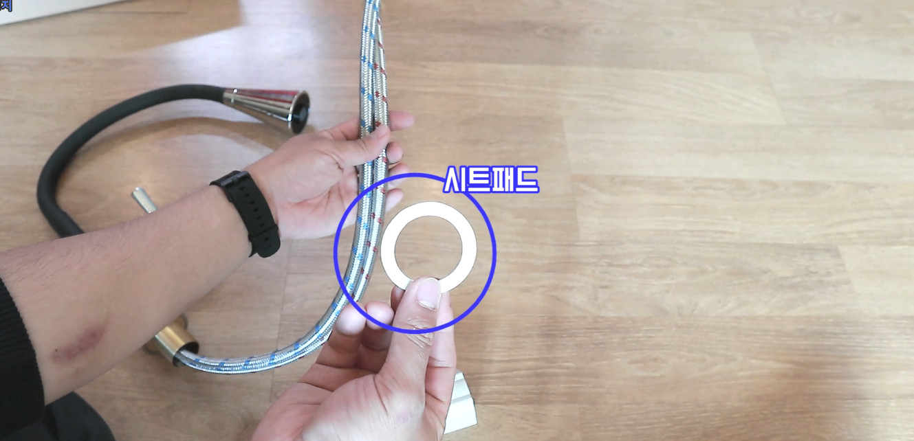 이렇게 들어가고 시트패드와 고무와샤 사이에 싱크대가 들어간다고 보면 됩니다.