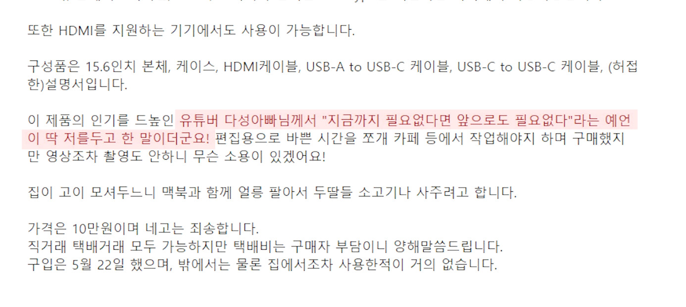 그냥 평범한 중고 판매 글인데, 중간에 보면