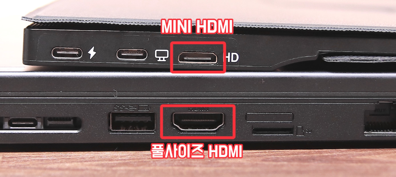 하지만 이와 같이 얇게 제작하기 위해서는 보통 많이 사용하는 풀사이즈 HDMI가 아닌 좀 더 작은 사이즈의 MINI HDMI 단자를 사용합니다. 개인적으로 아쉬운 부분이라고 생각합니다.