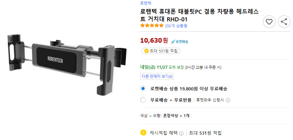 이렇게 생긴 헤드레스트 거치대만 있으면 자동차용 모니터로도 사용 가능합니다.