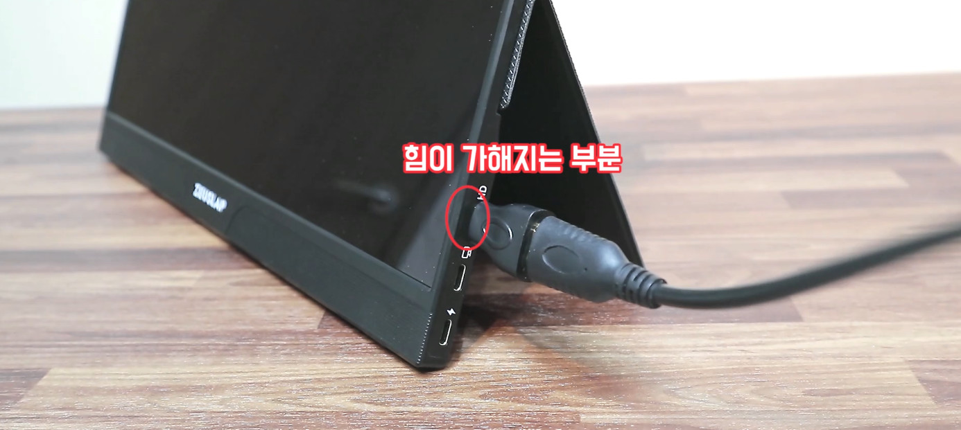 작은 사이즈의가 젠더는 TV나 모니터와 같이 고정 되어있는 기계에 사용하는 것이 올바르죠. 휴대용 모니터는 기본적으로 움직임이 발생되기 때문에 제가 추천하는 형식의 젠더가 훨씬 좋습니다.