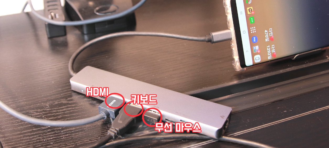 제가 노트북 리뷰에서 자주 사용하는 알리표 저가형 PD허브입니다. 여기서 삼성 스마트폰을 연결하고 전원을 공급학 HDMI로 화면을 출력하면 당연히 덱스가 실행되죠. 그리고 남은 USB에 키보드와 마우스를 연결할 수 있습니다. 일반적으로 알고있는 덱스 스테이션, 덱스 패드와 다를거 하나도 없죠.