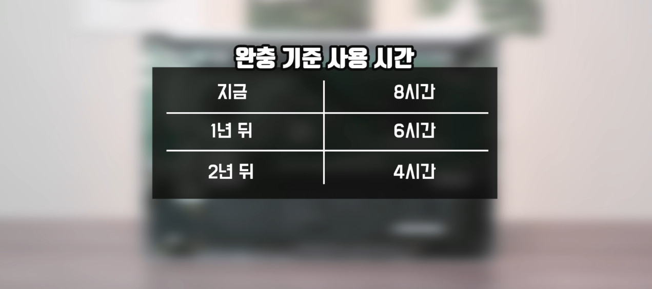 평소 완충을 기준으로 10시간 사용한다면 6시간이 되겠고, 5시간 사용한다면 3시간이 되겠죠.