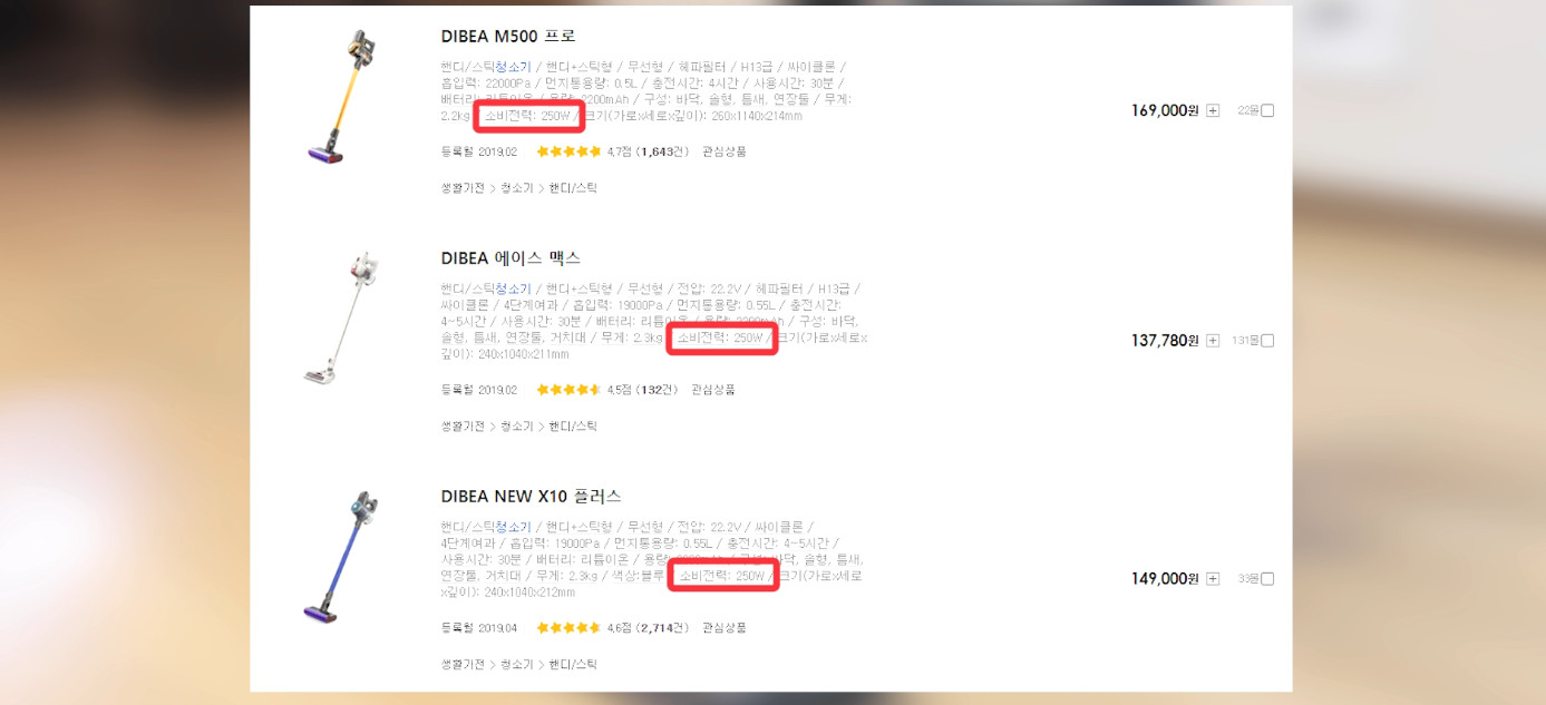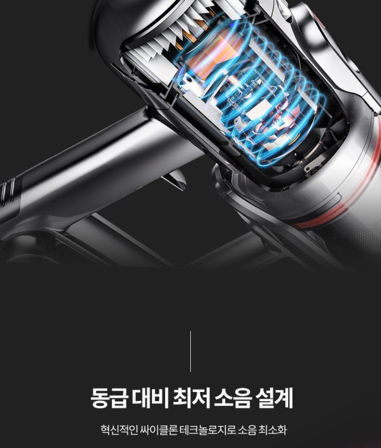 엄밀히 말하면 이 제품은 다른 제품들 대비 모터 출력이 높기 때문에 좀 더 조용한 것이 맞긴합니다. 하지만 실사용을 기준으로 보면 더 조용하다고 말 할 순 없죠.