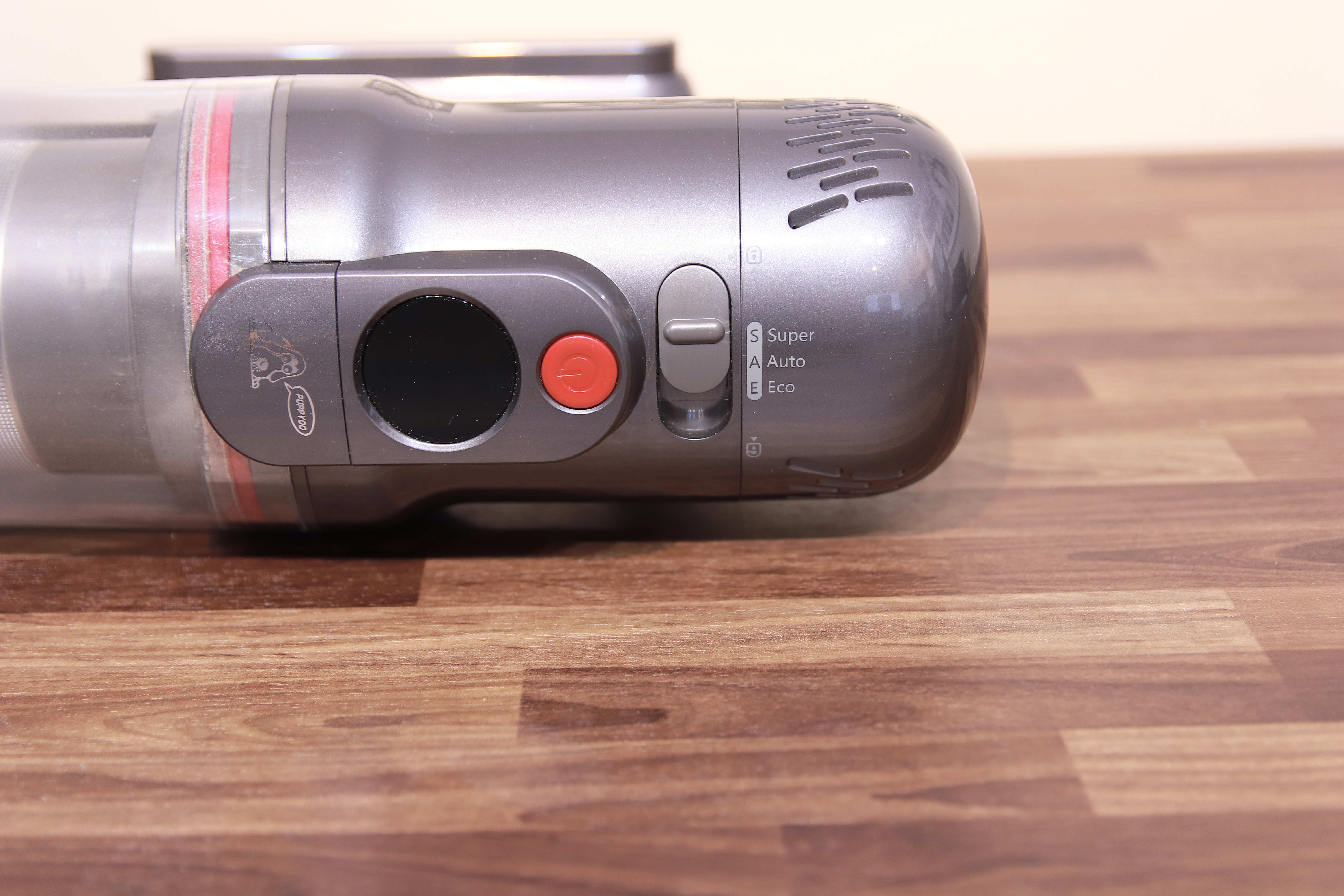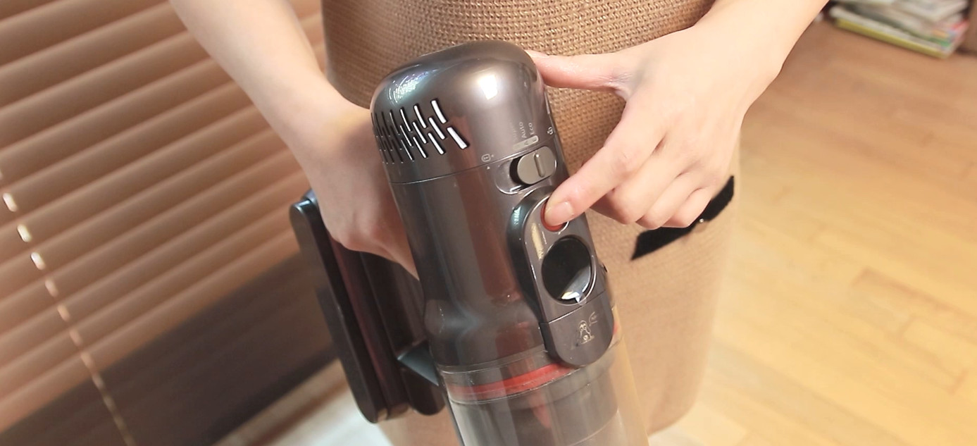 보통 이러한 핸디 스틱형 청소기들은 잡았을 때 기준, 검지에 전원 버튼이 있으면 편리합니다. 직관적으로 끄고 켤 수 있기 때문이죠. 그래서 한 손으로만 청소가 가능합니다. 하지만 이제품은 전원 버튼이 상단을 향하기 때문에 오른손으로 청소기를 잡고 왼손으로 전원을 ON/OFF 해야 합니다. 사실 크게 불편하지는 않지만 상황에 따라 조금은 귀찮을 수 있습니다.