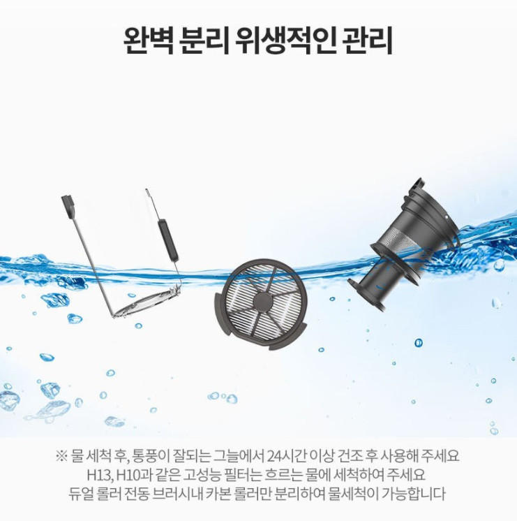 먼지통 자체는 완전 분리 후 물 청소가 가능하기 때문에 위생적인 사용이 가능합니다.