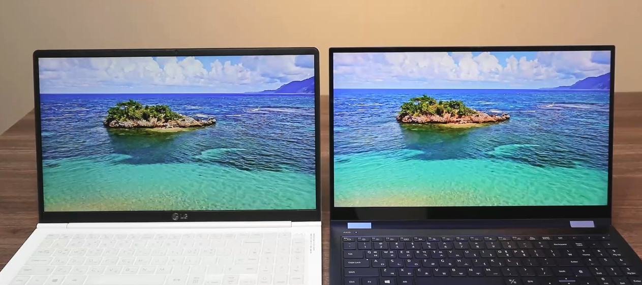 제가 전문가에게 직접 물어 봤는데, 큰 차이는 없지만 컬러볼륨 100%의 QLED가 좀 더 좋은 디스플레이라고 하더라고요. 최대밝기는 아웃도어 모드를 지원하는 이온이 당연히 더 밝습니다. 물론 일반적인 환경에서 그램의 밝기도 충분하기 때문에 구매를 고민 할 정도의 장점은 아니지만 밝은 디스플레이가 더 좋은 것은 사실이죠.