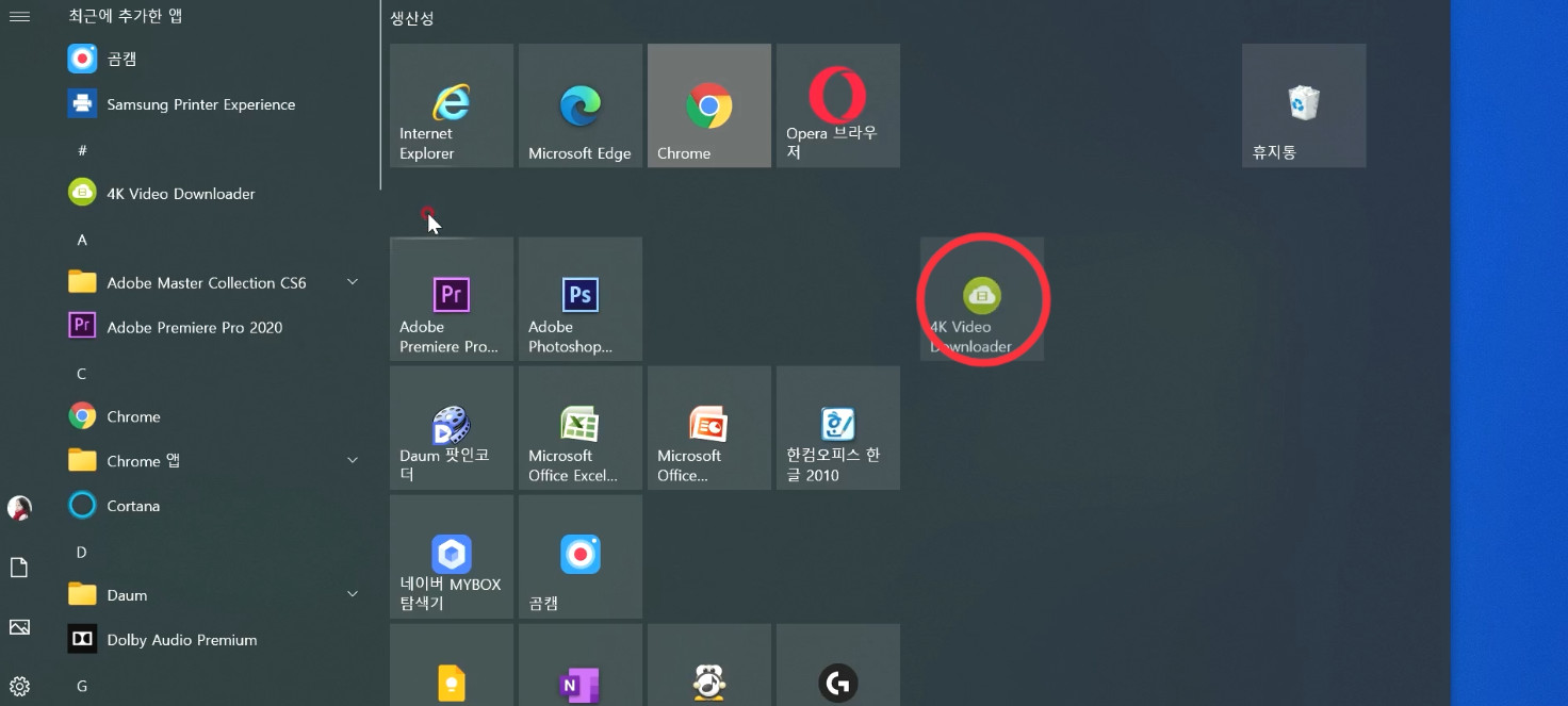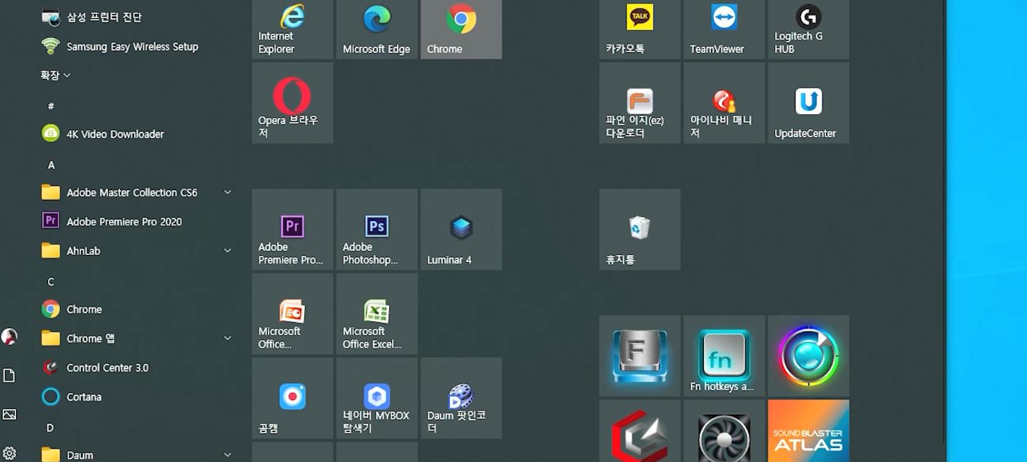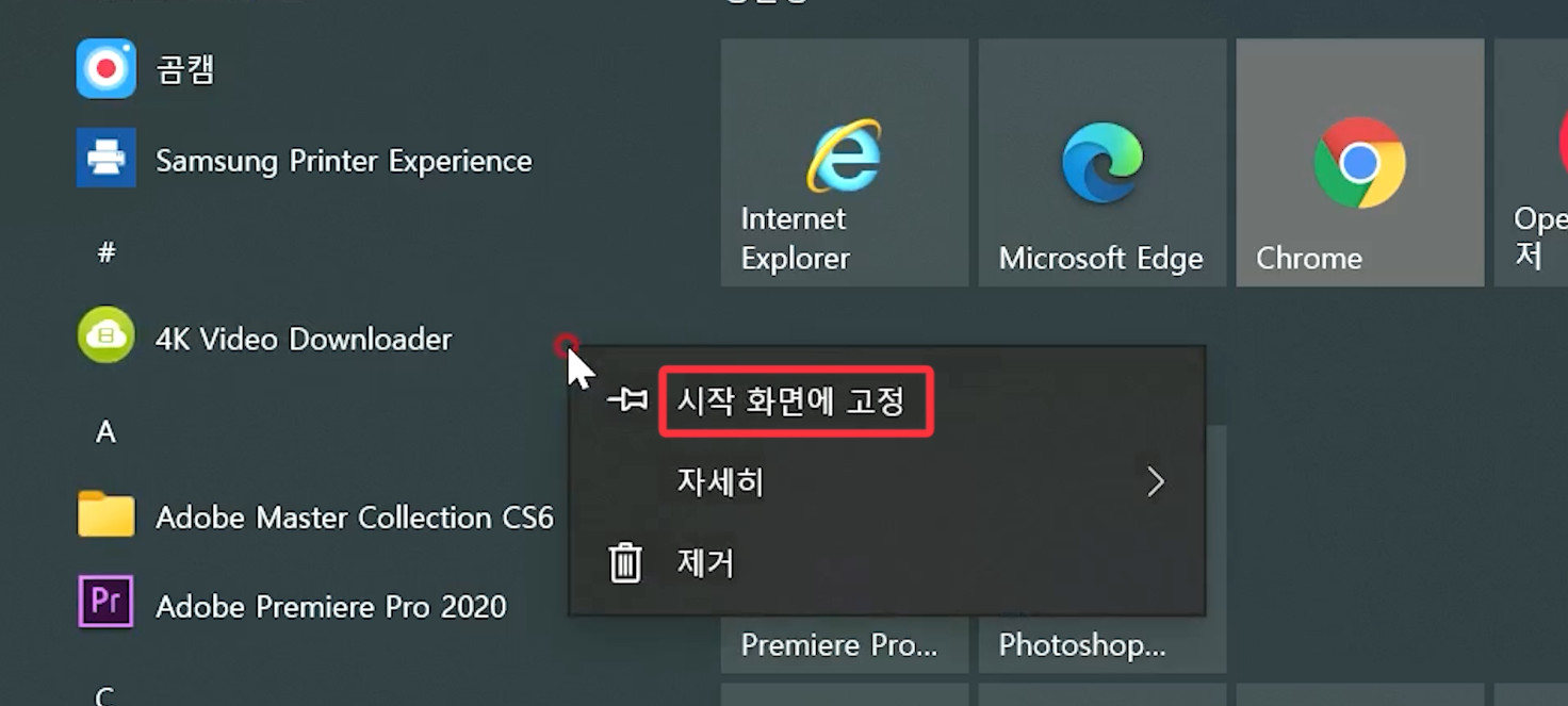 그리고 그 다음 많이 사용하는 프로그램들은 시작화면에 넣습니다.